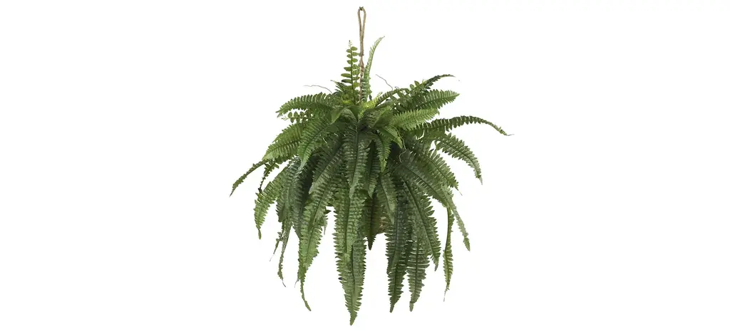 Sword-shaped fronds with shallow toothed pinnate gently curve down to gracefully hang 40". The Boston Fern is a classic houseplant overflowing with evergreen tiny leaves giving the plant a full and luscious look. Place up high on a pedestal, hanging basket or up on a windowsill for a simple touch of greenery.