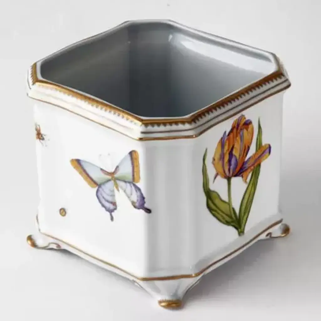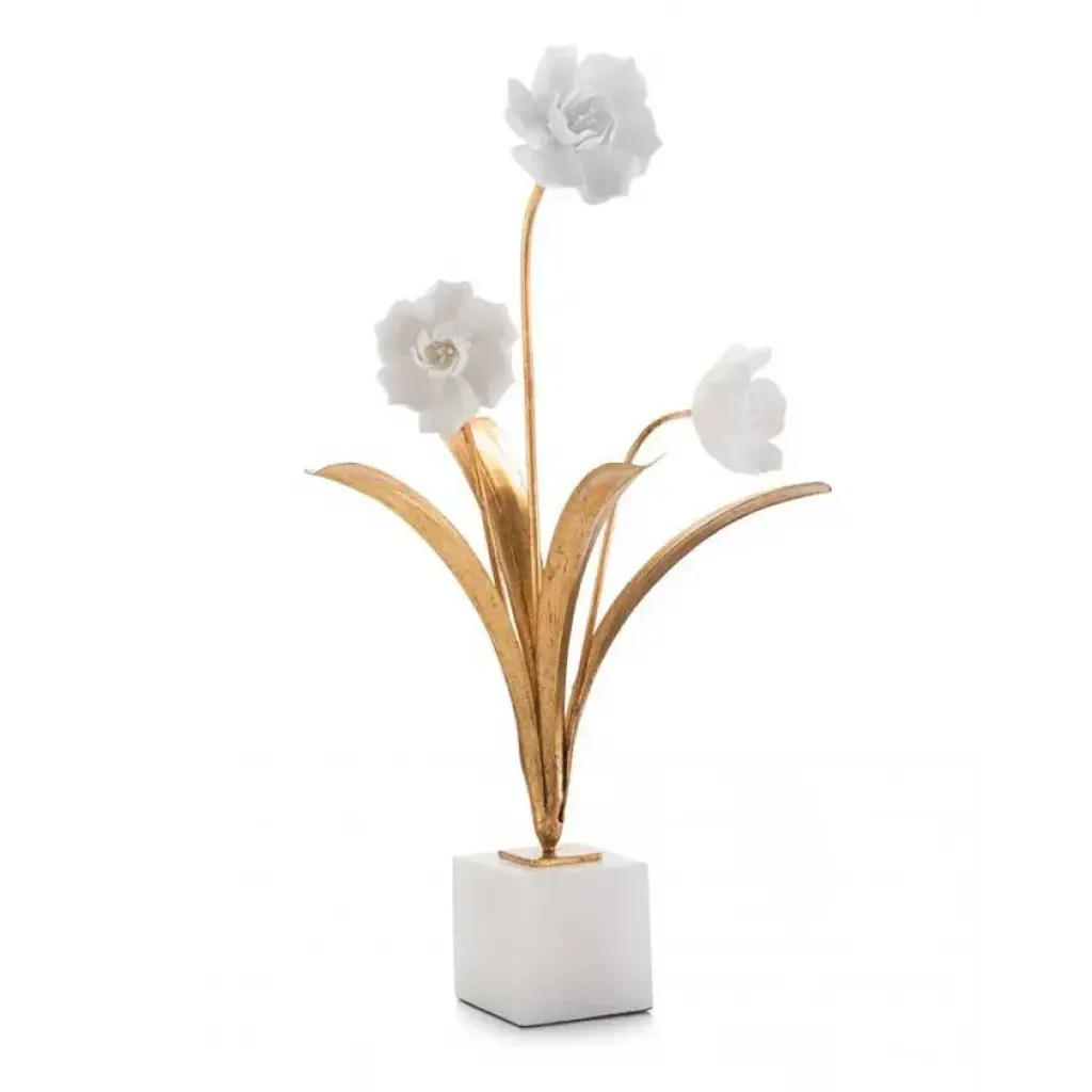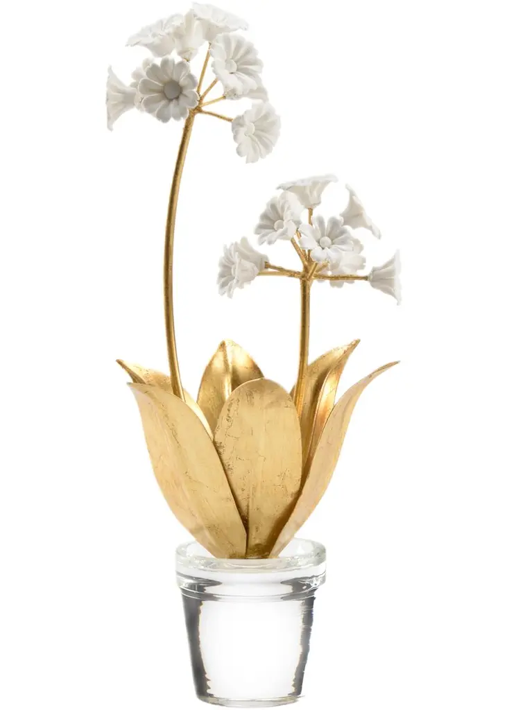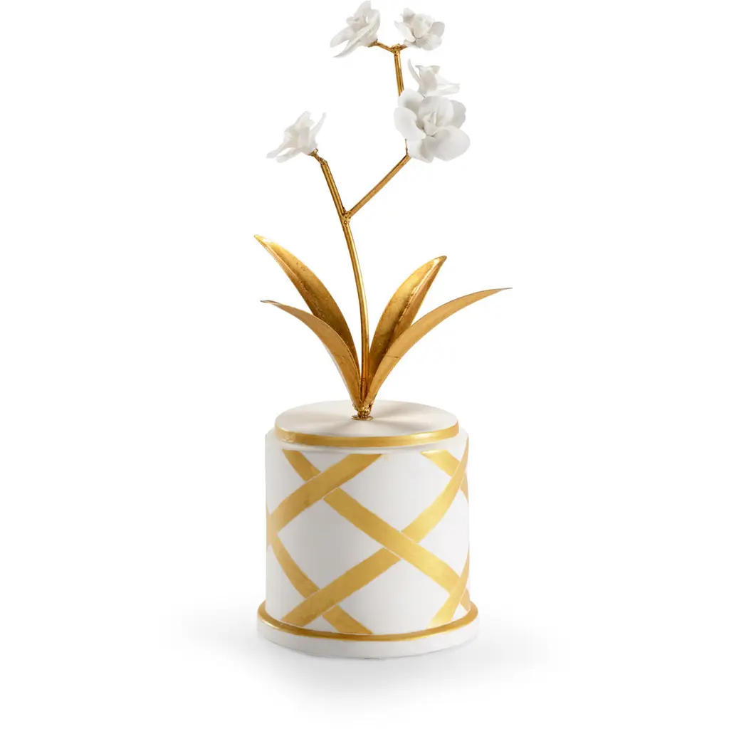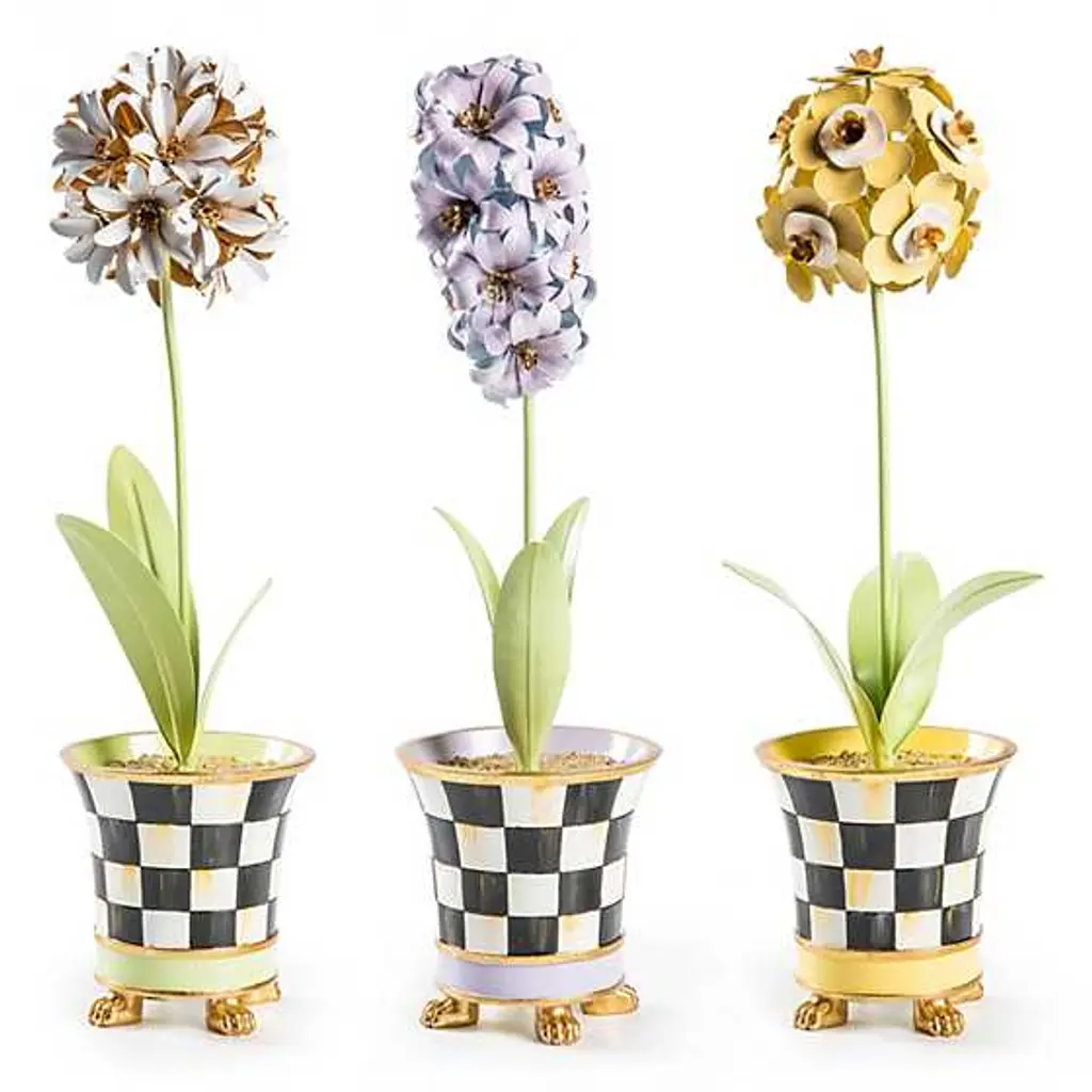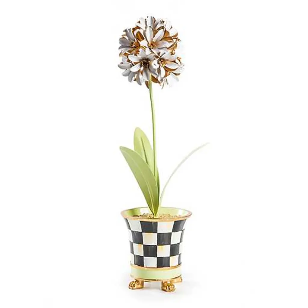 Spring ahead and top the table with this potted allium made of metal that’s set in a hand-painted Courtly Check® base, trimmed with pistachio green and gold accents.