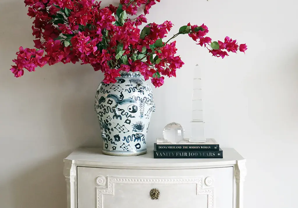 This stem lends a fresh, colorful look with its vivid fuchsia blossoms and bright green leaves. Its elonged stem adds everlasting visual height, creating a striking design that can easily style again and again.Comes as a bundle of two stems.Dimensions: 54" L