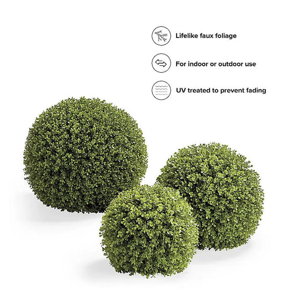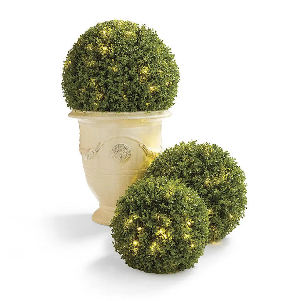 Our verdant, sculpted boxwood balls make a beautiful addition to any space, outdoors or inside. Each lifelike plant is made of ultra-durable plastic and has been UV protected to prevent fading. For indoor or outdoor use Lifelike faux foliage LED lights: 15" Ball: 70 lights 18" Ball: 90 lights 21" Ball: 110 lights UV treated to prevent fading Requires three AAA batteries (not included) Fluff and shape greenery after unpacking Clean with a soft, dry towel or duster Imported A Frontgate exclusive. At Frontgate, our primary focus is quality. We guarantee that every product we sell will stand up to the supreme test – our customers' satisfaction. To learn more about our policies, visit our Shipping & Processing, Returns & Exchanges and Warranty & Price Guarantee pages.