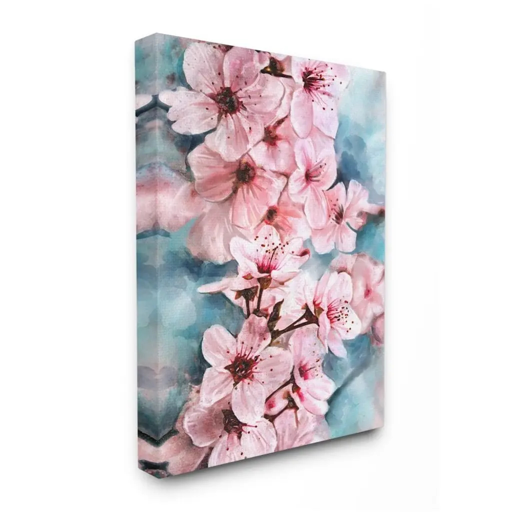Branch Of Blooming Cherry Blossoms Pink Blue11x14