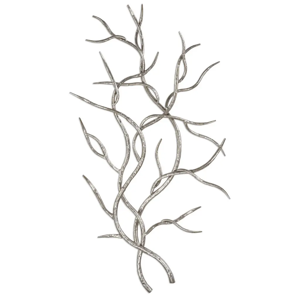 An organic, artful object perfect for your living room, the silver leaf finish on this metal branch adds a contemporary touch.
