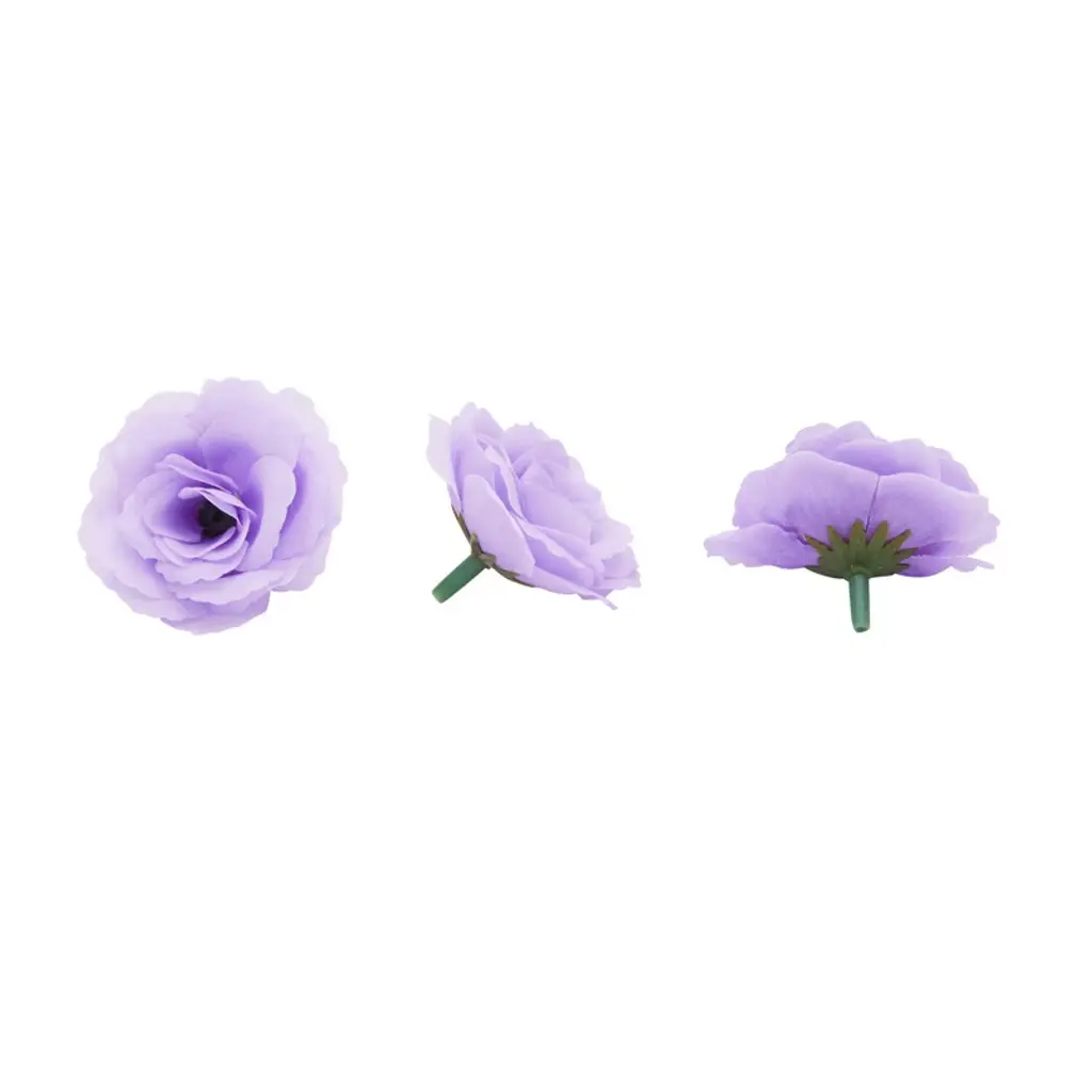 Add this set of 75 lavender purple rose artificial flower heads to your party supplies to create colorful flower arrangements, centerpieces, flower crowns, or home decor. The bulk artificial flower heads each measure 2 inches, and can easily be applied with glue or safety pins. The satin material ensures these stemless rose flower heads can be reused for multiple upcoming celebrations.
