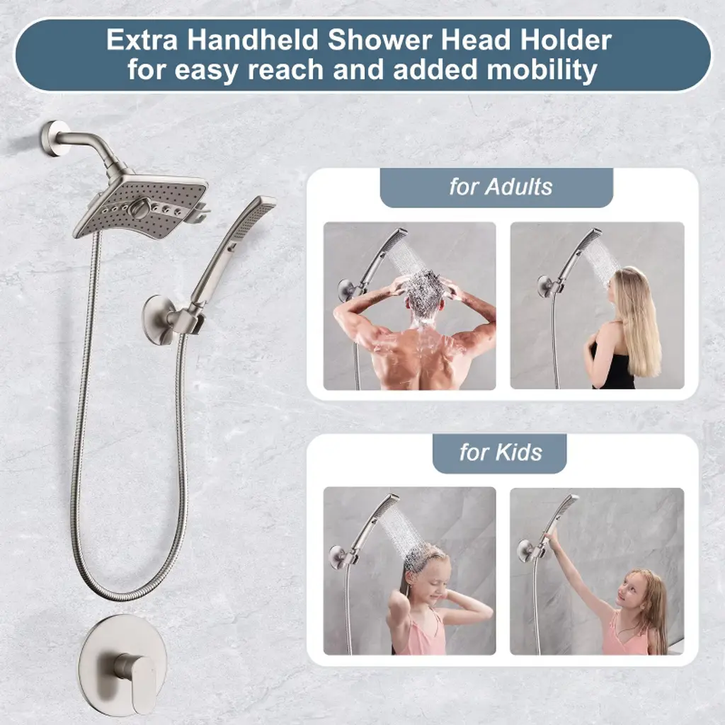 Bright Showers Dual Shower Head System With Handheld And Rainfall Shower, Faucet Set With Valve And Trim Kit, 79" Hose, Brushed Nickel