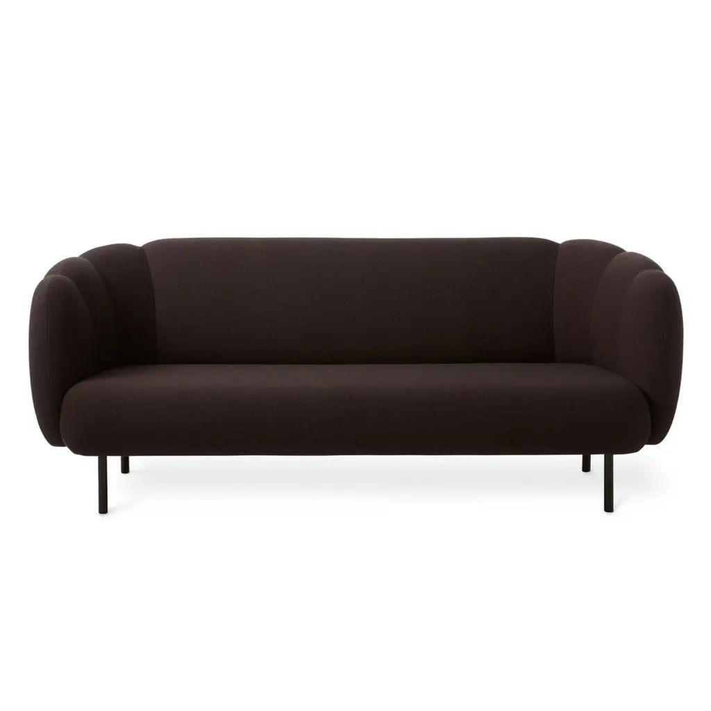 Caper 3 seater with stitches sprinkles eggplant by Warm Nordic.Dimensions: D200 x W84 x H 80 cm.Material: textile upholstery, wooden frame, powder coated black steel legs.Weight: 55.5 kgAlso available in different colours and finishes. An elegant sofa with an organic design inspired by the puffed sleeves and layered designs of haute couture. Its soft lines and chic details make the Cape sofa a natural focal point, preferably in the company of the armchair in the same range. Both items of furniture are available with or without visible stitching. The sofa looks just as elegant in a modern building as in an old-fashioned luxury flat and has a light look by virtue of its slender metal legs. To achieve aesthetic perfection the Cape range is covered with exclusive furnishing fabrics, including 'Hero', whose soft, almost felt-like surface complements the sofas organic shape, and which is designed by Patricia Urquiola.Warm Nordic is an ambitious design brand anchored in Nordic design history and with a timeless, aesthetic style that inspires you to appreciate the little things in life. The company is the result of several years’ intense work on developing a new design brand with design history, quality and personality at its core. Warm Nordic boasts a colourful and charming universe of furniture, lamps and accessories full of personality. Our designs encapsulate the Nordic spirit, which in its essence is timeless, inclusive and warm.
