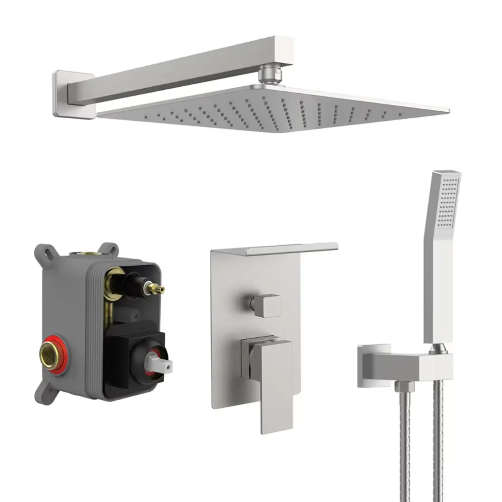This quality, durable brass shower system features a rainfall shower head and hand shower. With a wall-mount installation, the shower head, positioned above you, simulates the feeling of a rainfall cascading down to you so that you will feel every drop ofdrop of water trickle on you calmly and make you more relaxed when you take a shower. And the handheld shower could enhance your everyday soaking experience. The diverter allows you to switch from soothing soak to manual operation with the push of a button.
