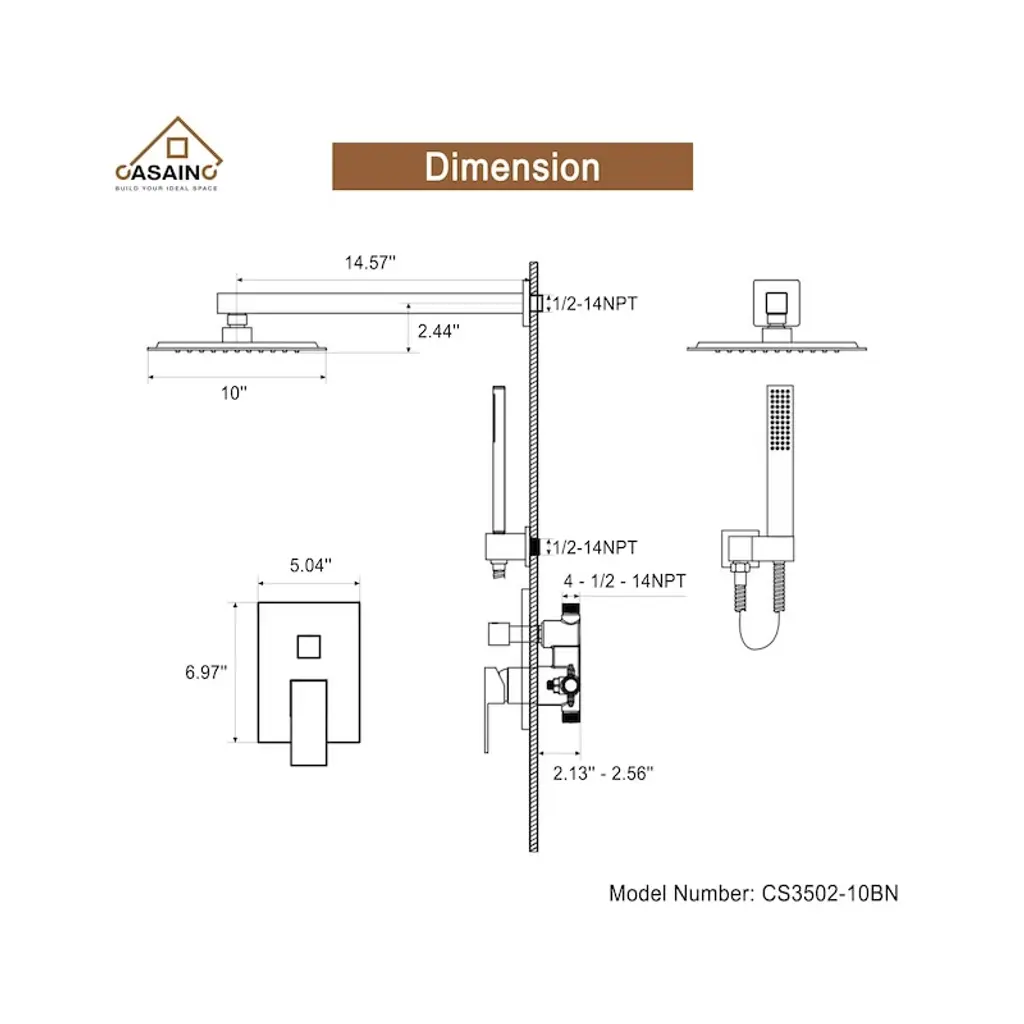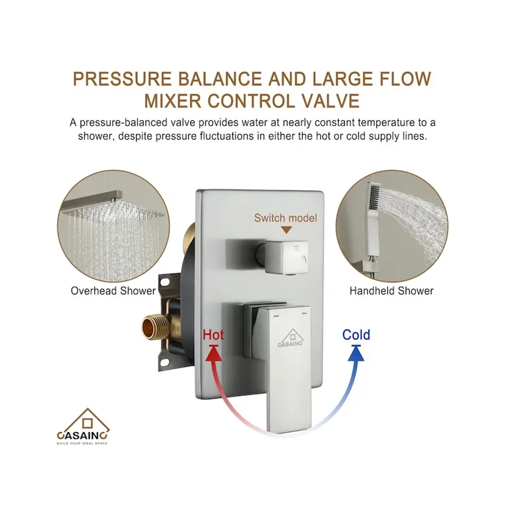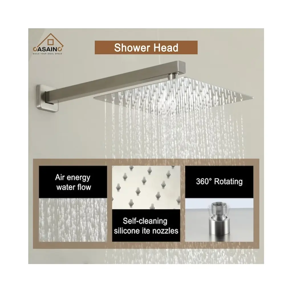 Casainc 10'' Wall Mounted Shower System With Handheld Sprayer, Brushed Nickel