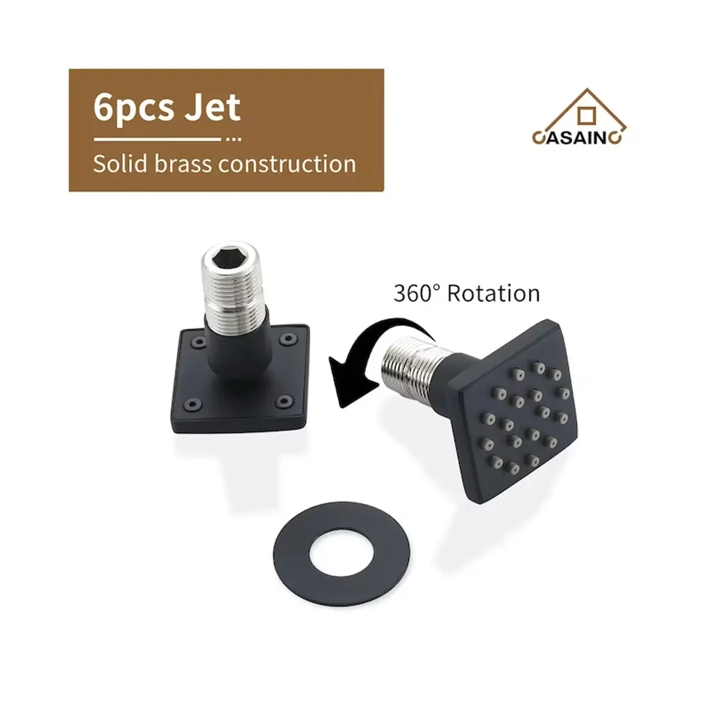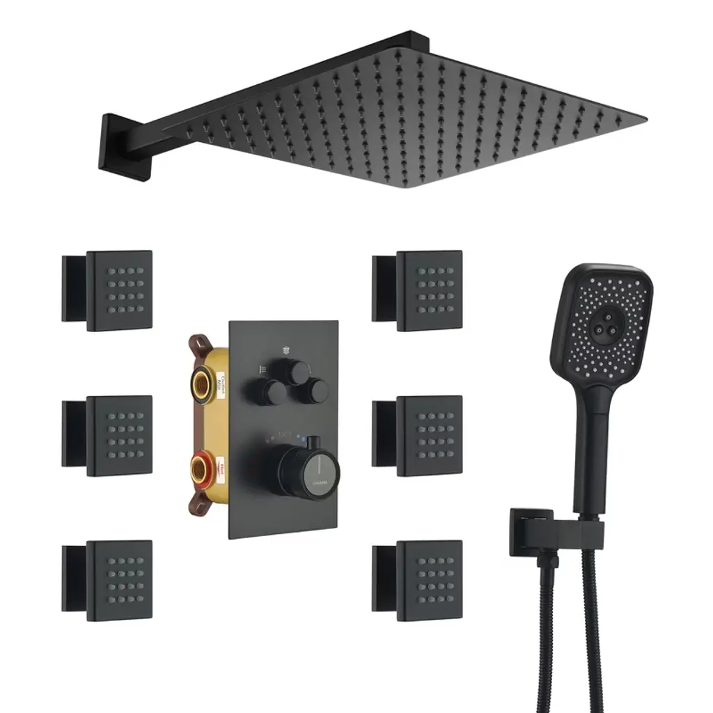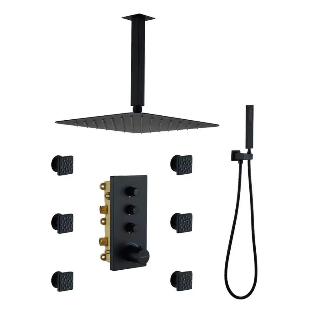 Casainc 12'' Ceiling Mounted Square Shower System With Handheld Spray And 6 Body Jets, Matte Black