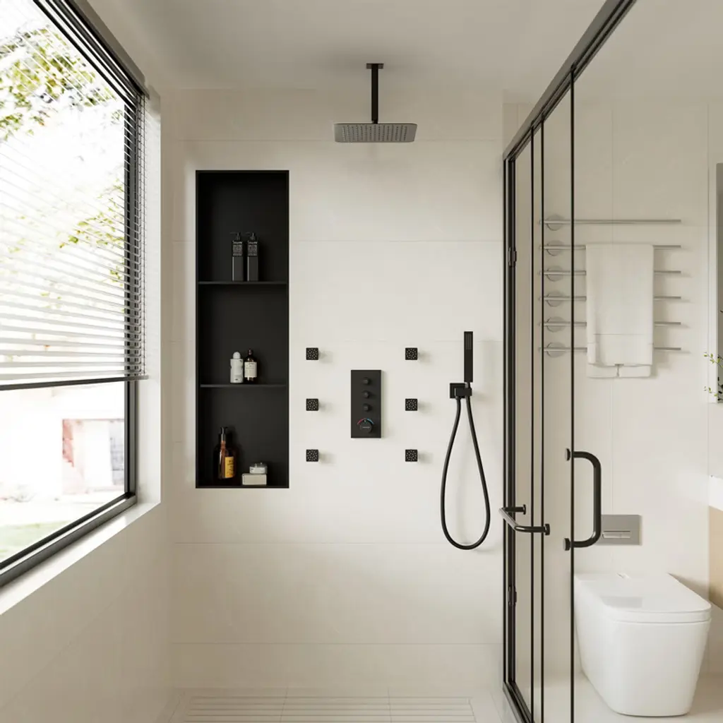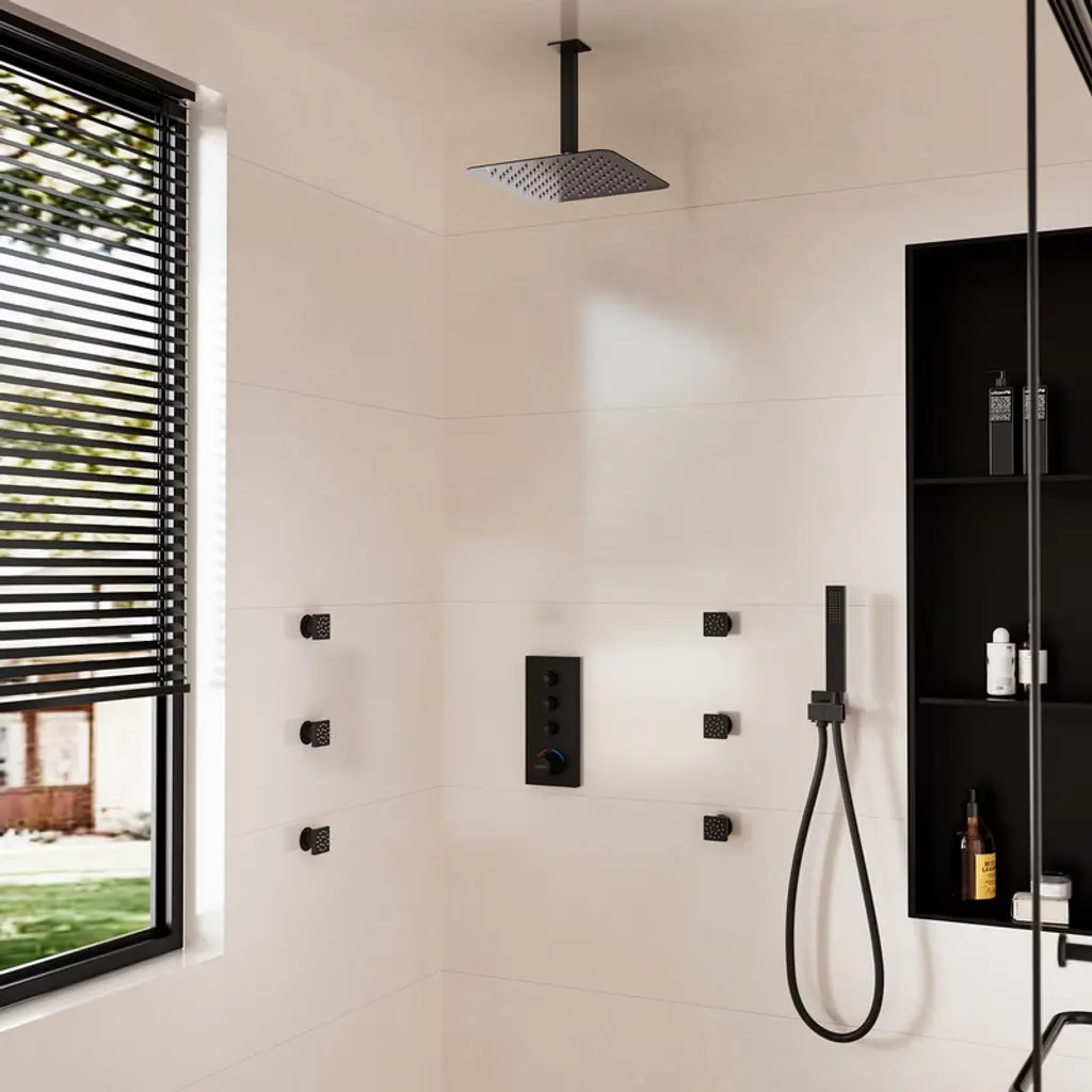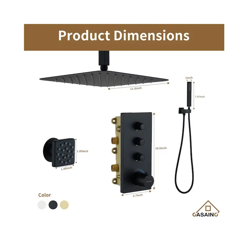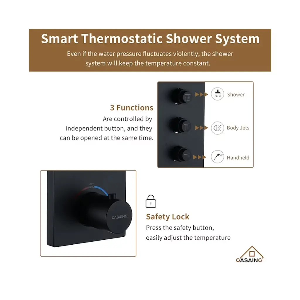 Casainc 12'' Ceiling Mounted Square Shower System With Handheld Spray And 6 Body Jets, Matte Black