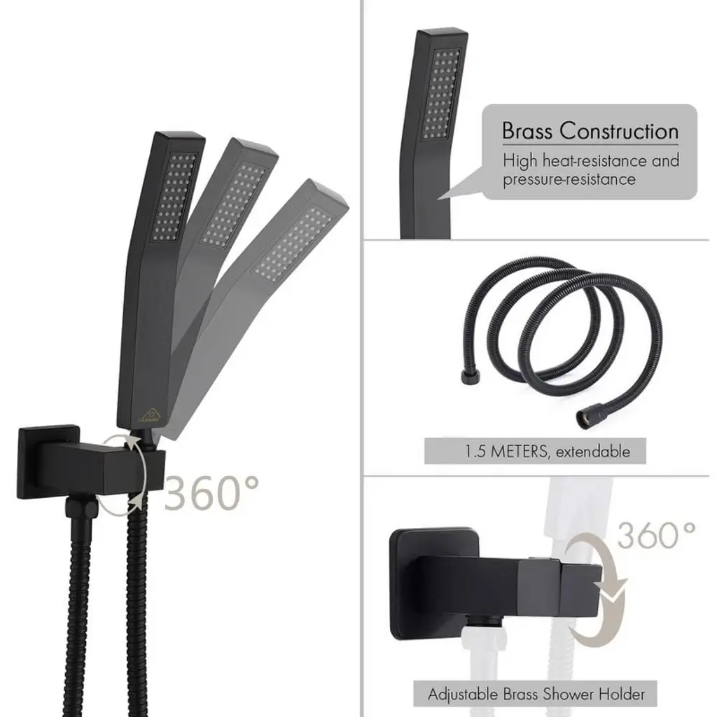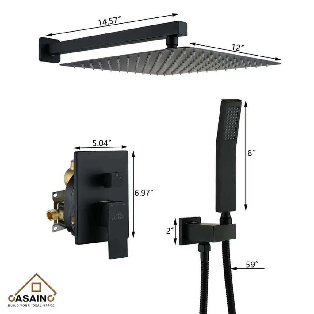 Casainc 12'' Wall Mounted Square Shower System With Handheld Sprayer, Matte Black