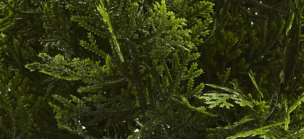 Adorned with intricate stems, this lush Cedar bush is the perfect background foliage for a fireplace floor arrangement or mudroom accent piece. Lifelike, detailed cedar leaves are arranged with adjustable stems. Place with holiday accessories or springtime figurines for year-round seasonal decor. Bush comes with round, black plastic pot.