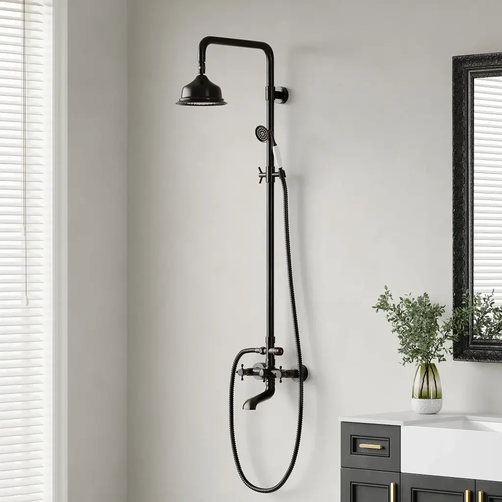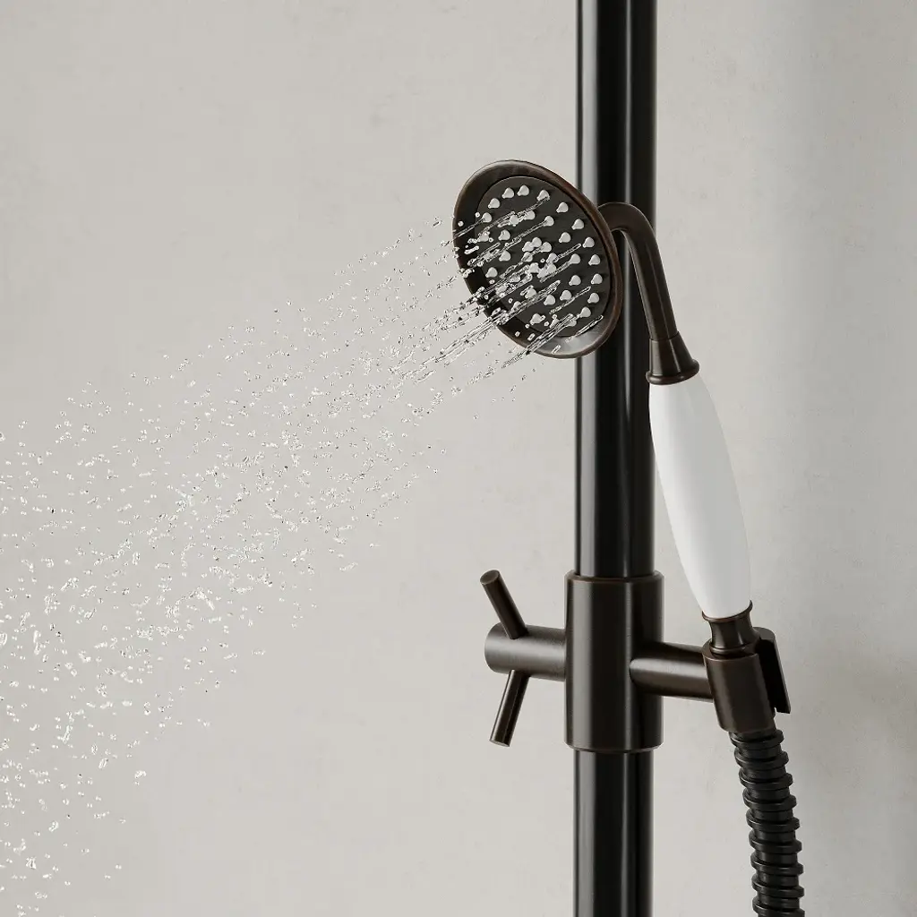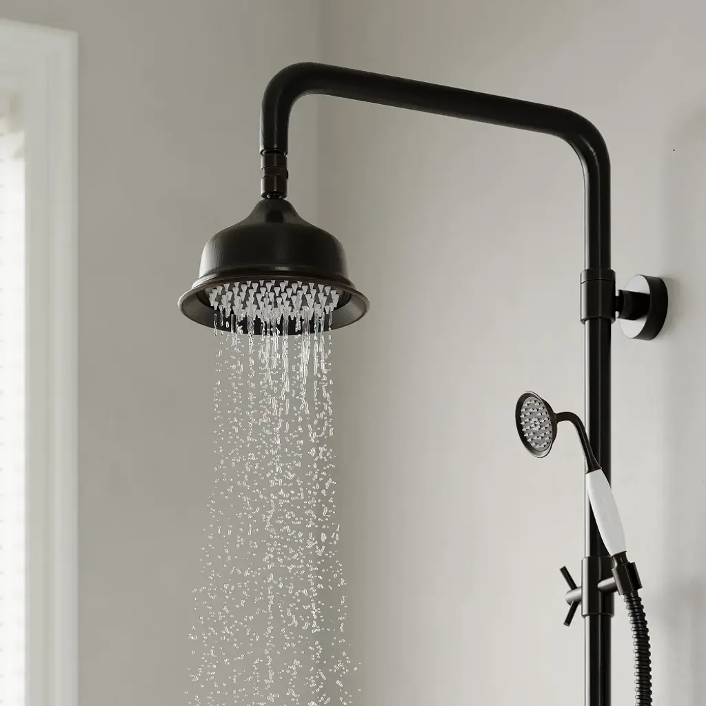 Chester Vintage Bathroom Exposed Rainfall Shower System Handheld Shower Antique Black
