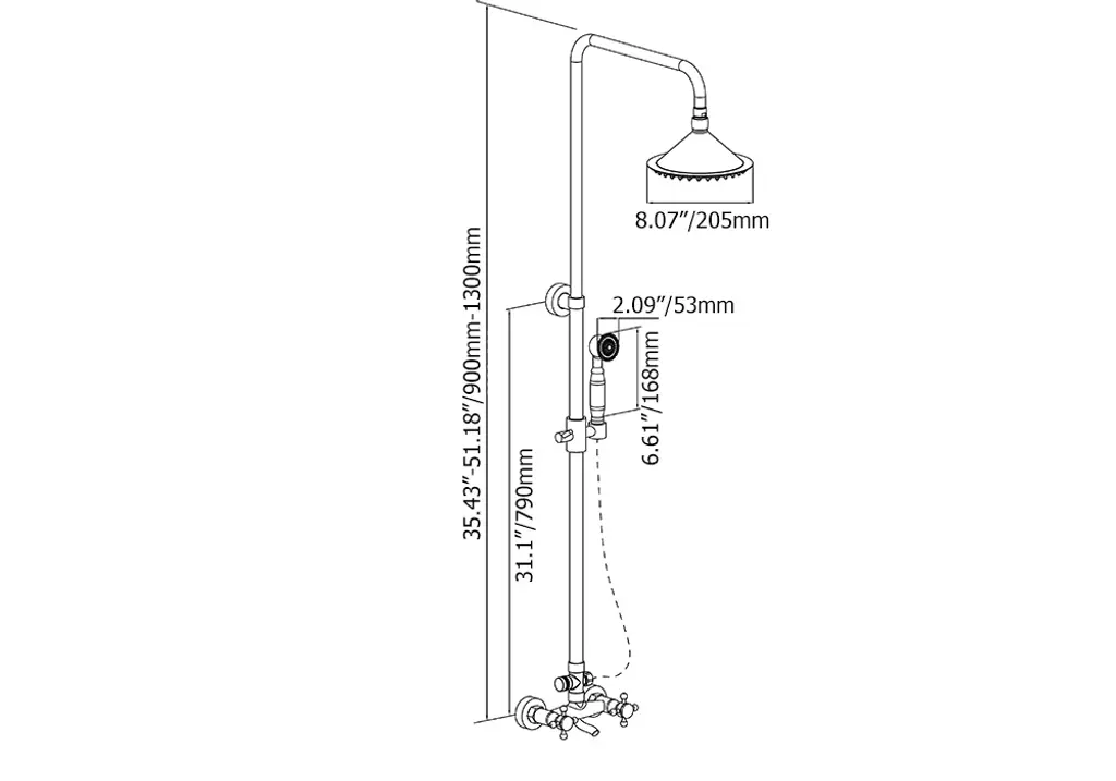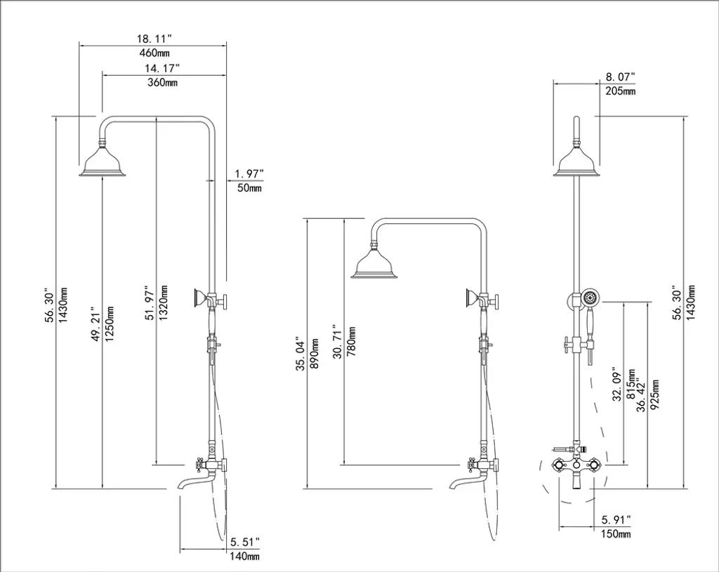 Carrying a charming old-world-inspired styling, Chester Faucet Collection coordinates well with a traditional theme. This Chester exposed shower system features a clean, simple body merging with cross handles and curvaceous spout for a whimsical, elegant touch. A round rain shower provides a sprinkling sensation all over your body. A matching hand shower offers focused spray to any specific part and provides extra convenience for washing the bathroom. And the tub spout makes filling the bathtub or bucket a breeze. Classy and fancy, this exposed shower set will turn any ordinary bathroom into an urban masterpiece.