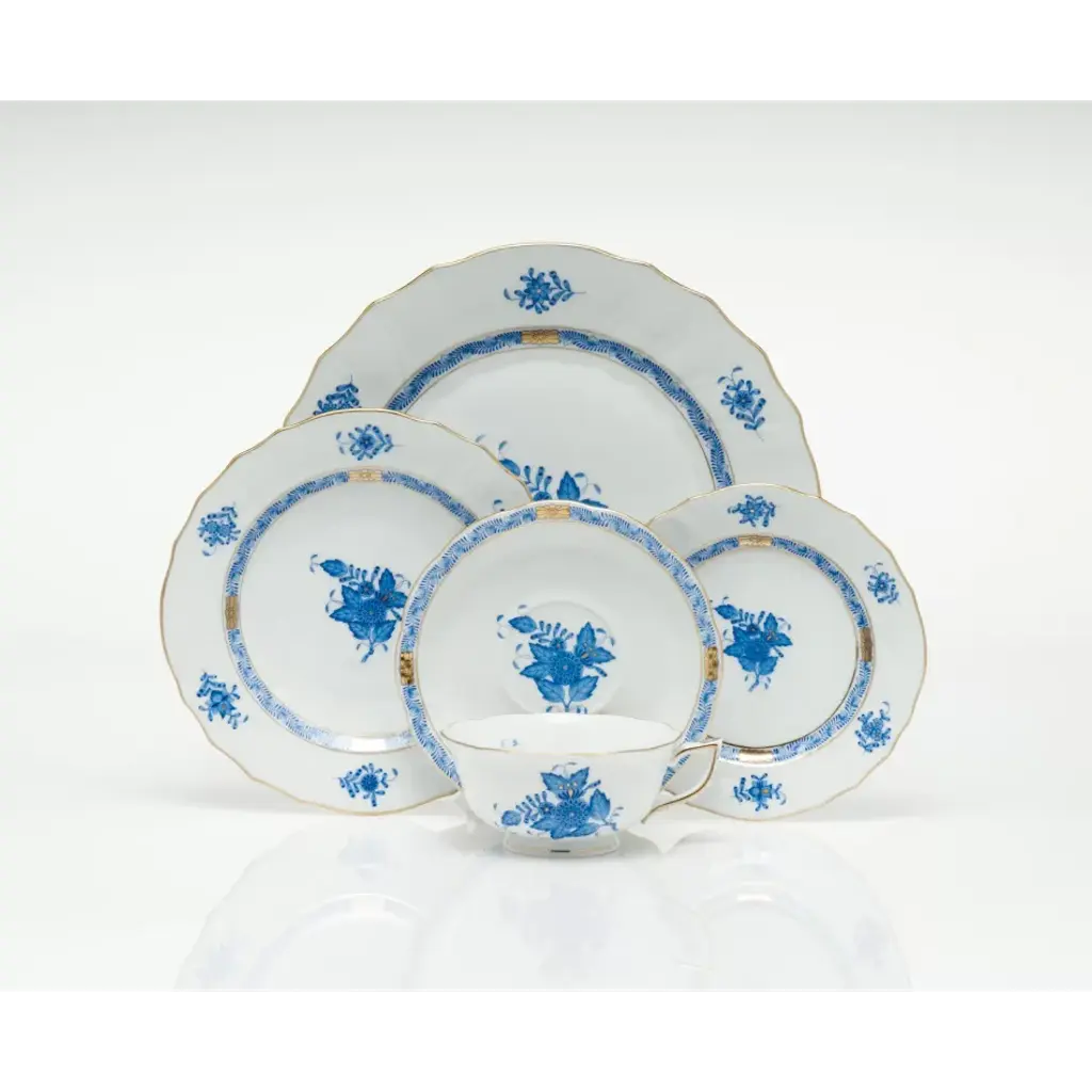 A Herend classic. Originally created in 1930 for Count Albert Apponyi, the pattern features a center motif of a stylized peony surrounded by a garland of leaves with 24K gold rosettes. It is available in multiple color options. Hand painted in Hungary. Now the biggest porcelain manufactory in Europe, Herend was founded in 1826 to produce earthenware in the small Hungarian village for which it was named. At the time, Hungary was flooded with low-cost pottery, but in 1839, Mor Fischer became the Manufactory’s new owner and he decided to focus on producing dinnerware replacement pieces for Europe’s royal families to complement their valuable porcelain patterns from Germany and the Far East. As his client base grew, Fischer commissioned his artists to begin designing dinnerware patterns of their own. Queen Victoria’s 1851 purchase of a large set for Windsor Castle was a milestone, setting the stage for aristocrats throughout Europe to clamor for Herend in their estates. In the 1850s, Herend added meticulously-crafted figurines to its creations. Herend’s trademark fishnet pattern, which is widely recognized and prized as Herend’s signature design, started in 1858 when an artist who was intrigued with a Chinese plate’s fish scale design painted it onto a rooster figurine to imitate feathers.
