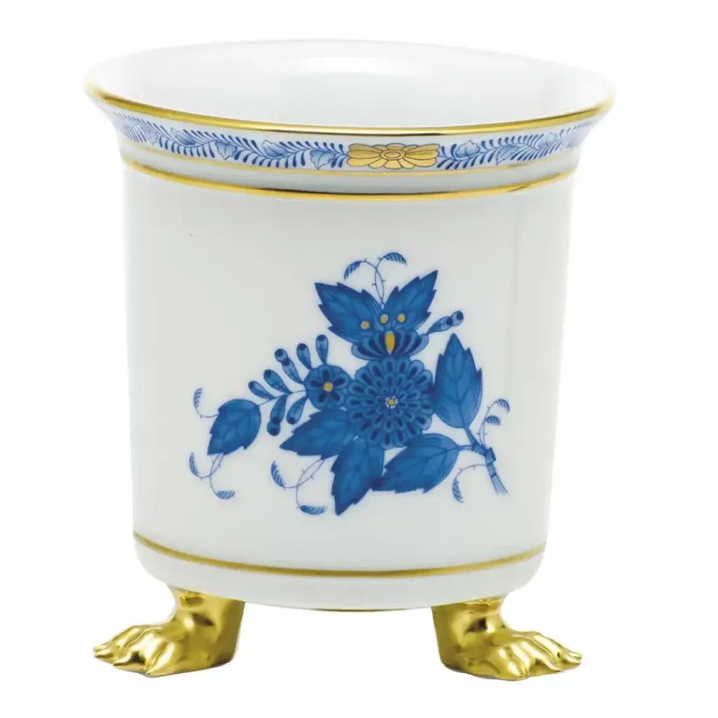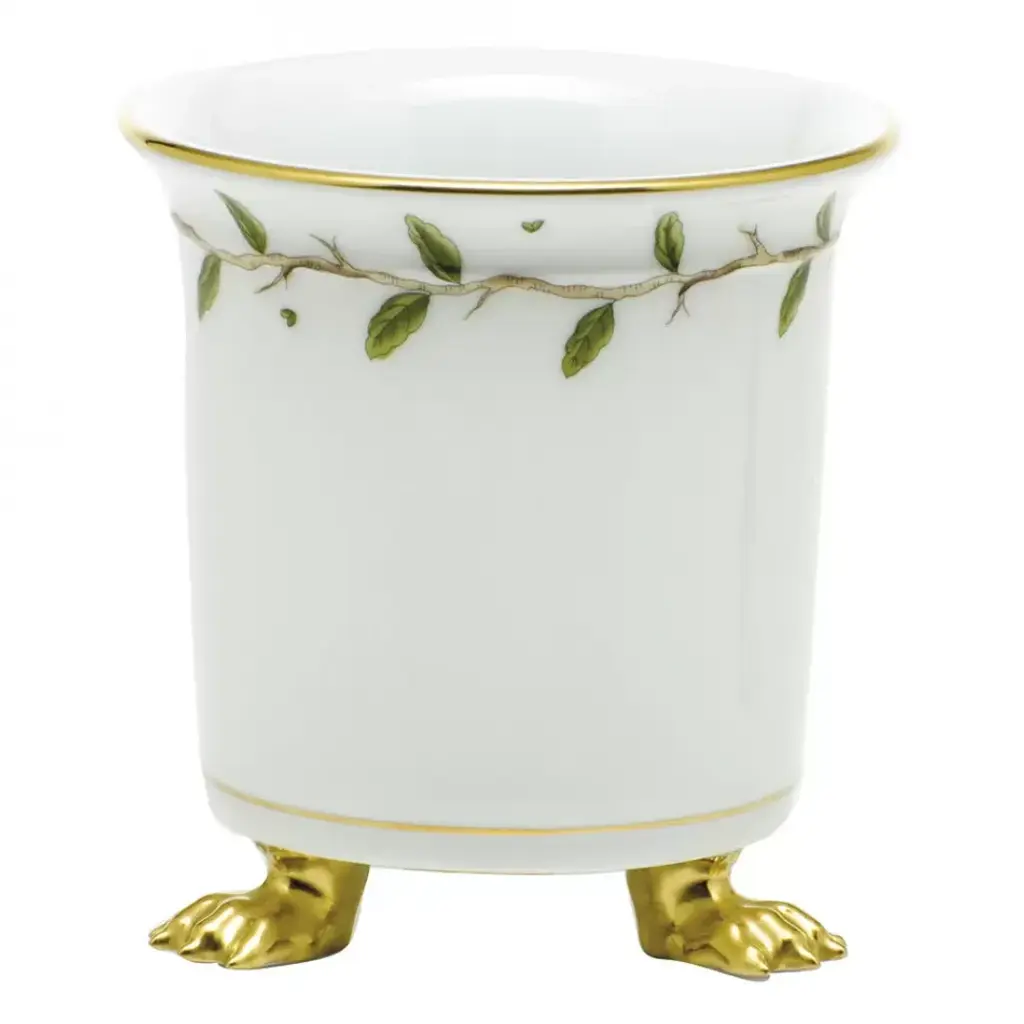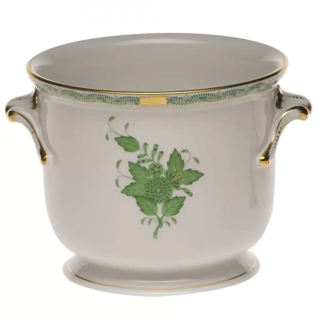 Chinese Bouquet Green Mini Cachepot With Feet 3.75 In L X 4 In H