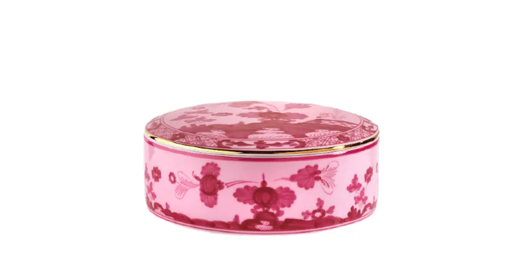 A Herend classic. Originally created in 1930 for Count Albert Apponyi, the pattern features a center motif of a stylized peony surrounded by a garland of leaves with 24K gold rosettes. It is available in multiple color options. Hand painted in Hungary. Now the biggest porcelain manufactory in Europe, Herend was founded in 1826 to produce earthenware in the small Hungarian village for which it was named. At the time, Hungary was flooded with low-cost pottery, but in 1839, Mor Fischer became the Manufactory’s new owner and he decided to focus on producing dinnerware replacement pieces for Europe’s royal families to complement their valuable porcelain patterns from Germany and the Far East. As his client base grew, Fischer commissioned his artists to begin designing dinnerware patterns of their own. Queen Victoria’s 1851 purchase of a large set for Windsor Castle was a milestone, setting the stage for aristocrats throughout Europe to clamor for Herend in their estates. In the 1850s, Herend added meticulously-crafted figurines to its creations. Herend’s trademark fishnet pattern, which is widely recognized and prized as Herend’s signature design, started in 1858 when an artist who was intrigued with a Chinese plate’s fish scale design painted it onto a rooster figurine to imitate feathers.