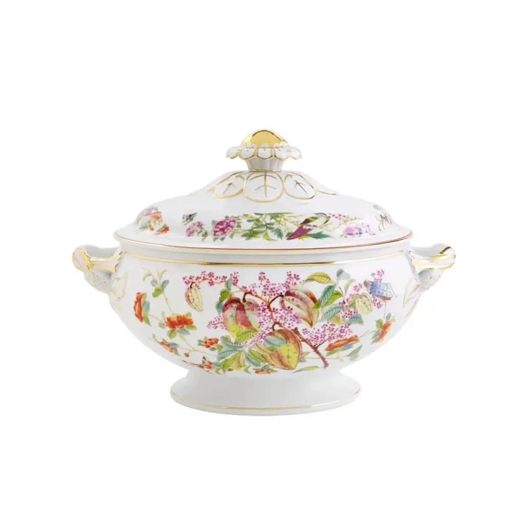 Chinese Bouquet Raspberry Mini Tureen With Lemon 5 In L X 4 In H