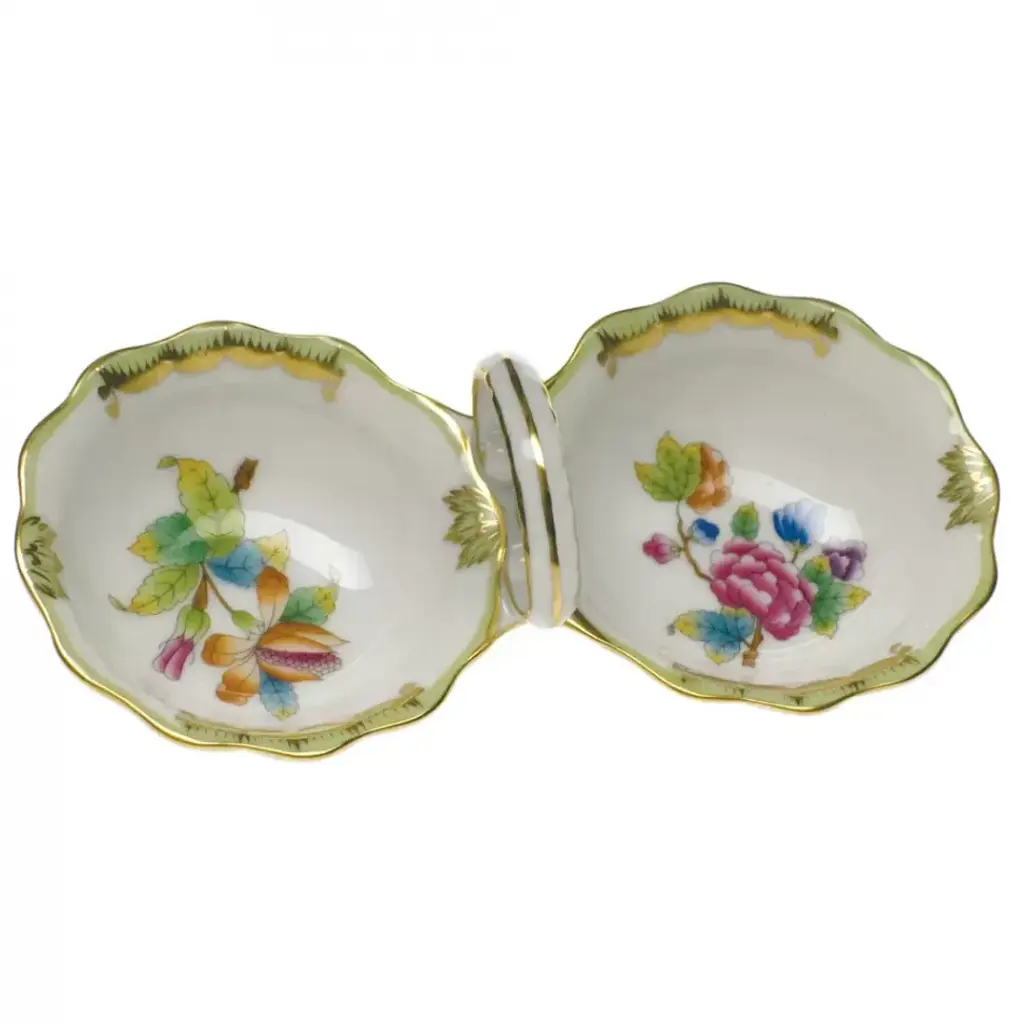 A Herend classic. Originally created in 1930 for Count Albert Apponyi, the pattern features a center motif of a stylized peony surrounded by a garland of leaves with 24K gold rosettes. It is available in multiple color options. Hand painted in Hungary. Now the biggest porcelain manufactory in Europe, Herend was founded in 1826 to produce earthenware in the small Hungarian village for which it was named. At the time, Hungary was flooded with low-cost pottery, but in 1839, Mor Fischer became the Manufactory’s new owner and he decided to focus on producing dinnerware replacement pieces for Europe’s royal families to complement their valuable porcelain patterns from Germany and the Far East. As his client base grew, Fischer commissioned his artists to begin designing dinnerware patterns of their own. Queen Victoria’s 1851 purchase of a large set for Windsor Castle was a milestone, setting the stage for aristocrats throughout Europe to clamor for Herend in their estates. In the 1850s, Herend added meticulously-crafted figurines to its creations. Herend’s trademark fishnet pattern, which is widely recognized and prized as Herend’s signature design, started in 1858 when an artist who was intrigued with a Chinese plate’s fish scale design painted it onto a rooster figurine to imitate feathers.