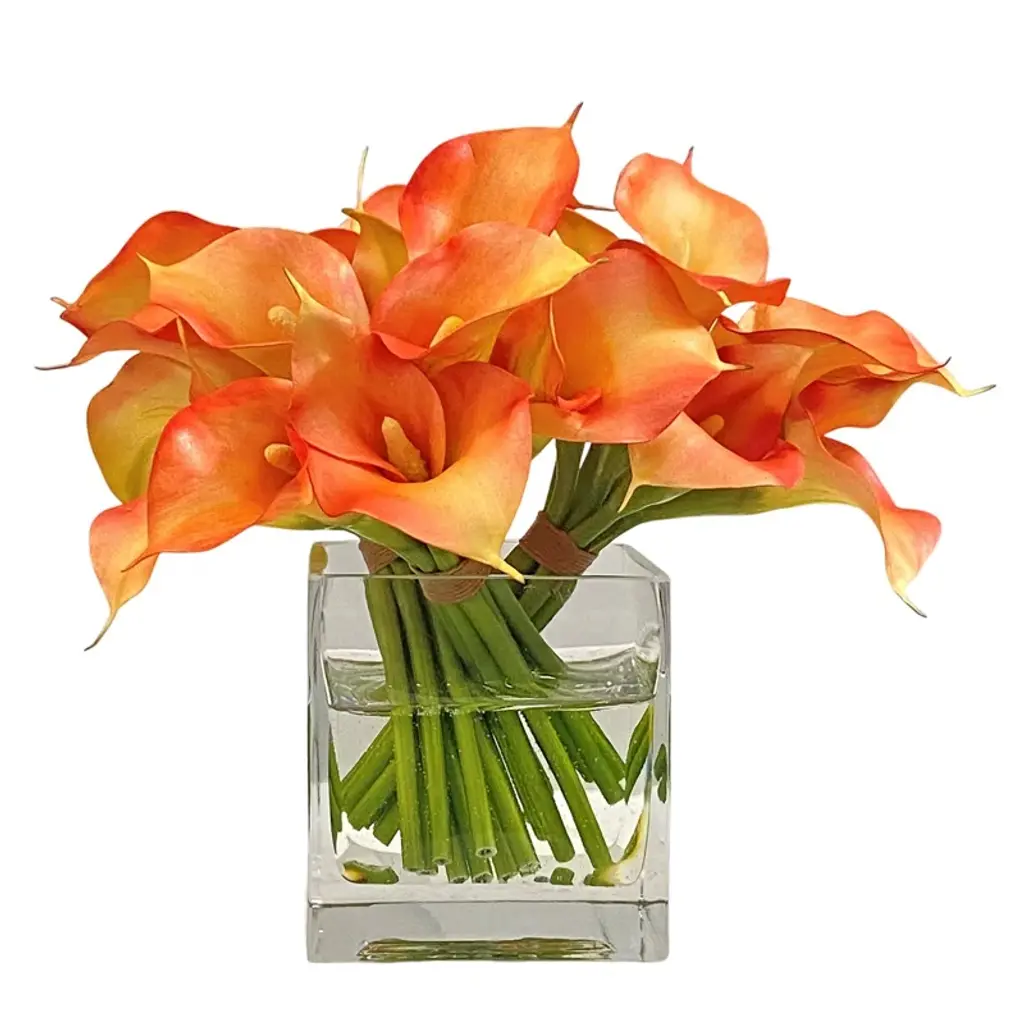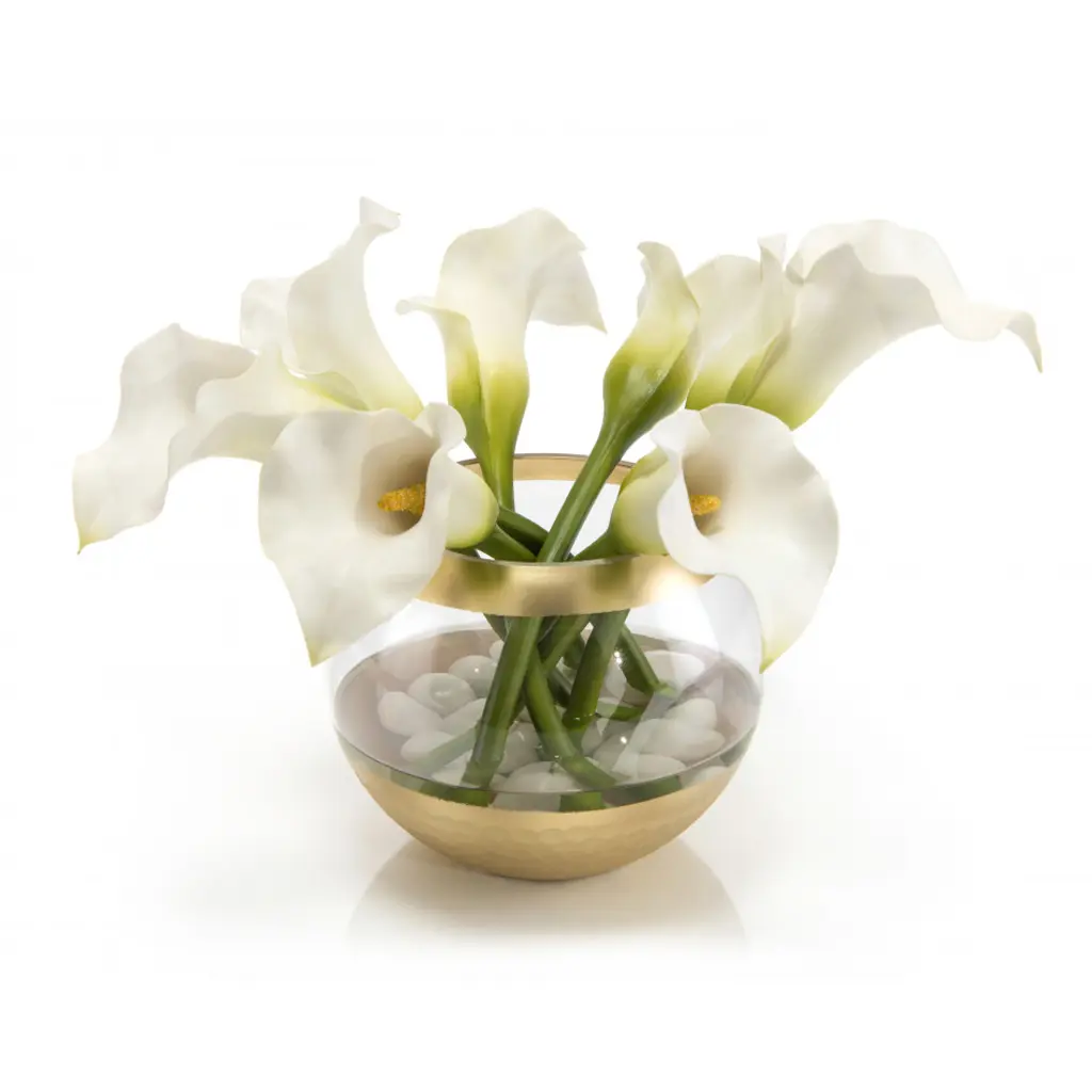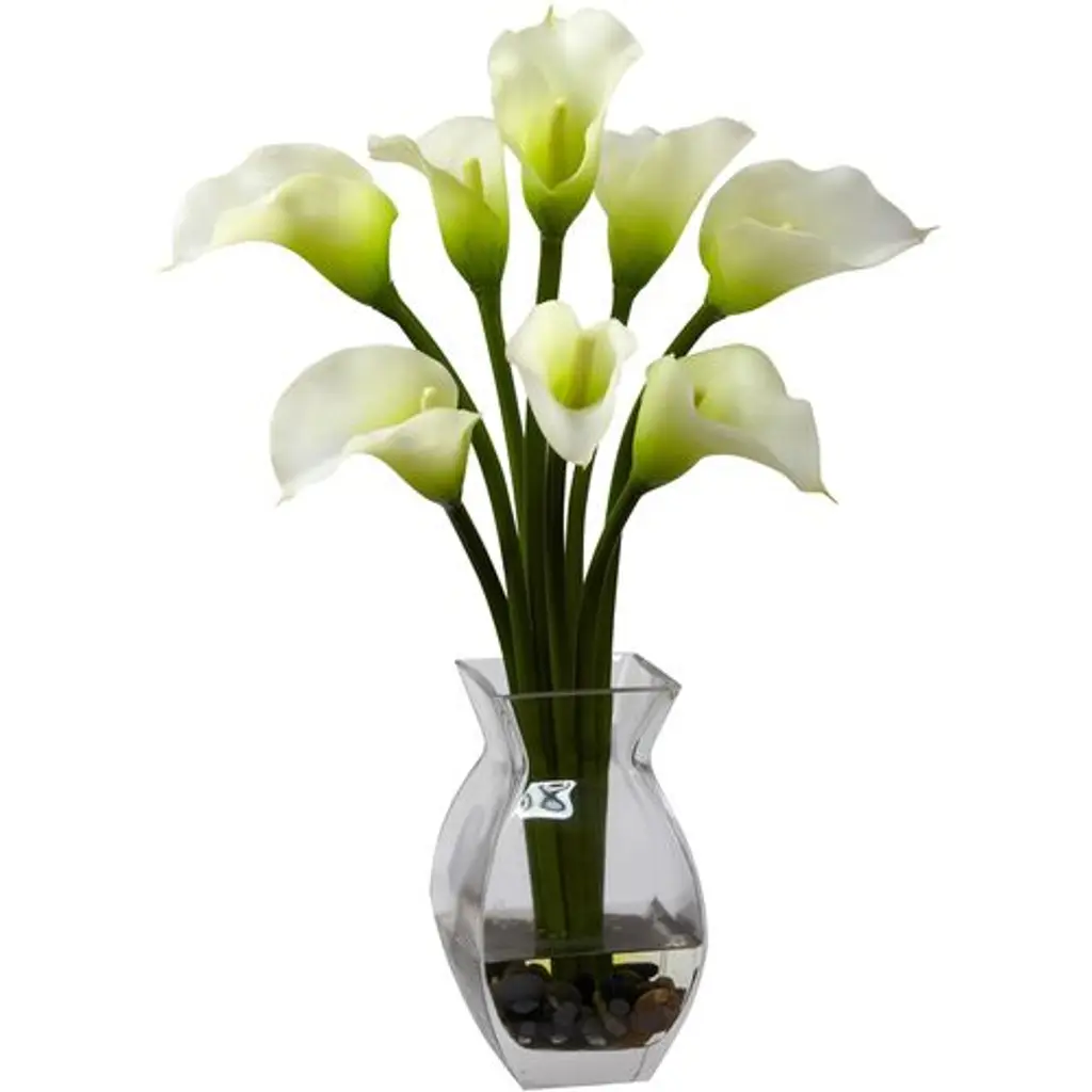 The Greek goddess Venus was said to be wildly jealous of the calla lily's beauty. Thanks to these impressively lifelike faux blooms, you can now enjoy that beauty year-round. The arrangement stands 16 inches tall in a clear glass vase filled with artificial water and river rocks.