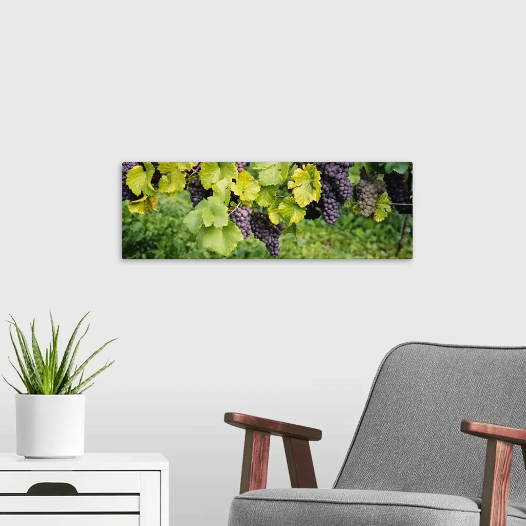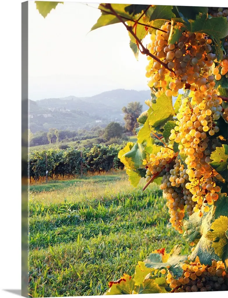 Close Up Of Grapes Hanging On Plants In A Vineyard