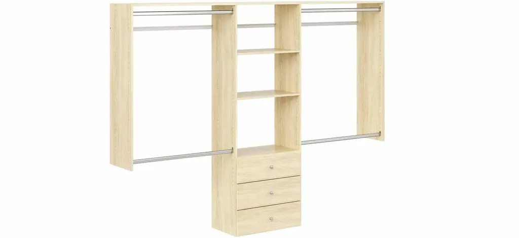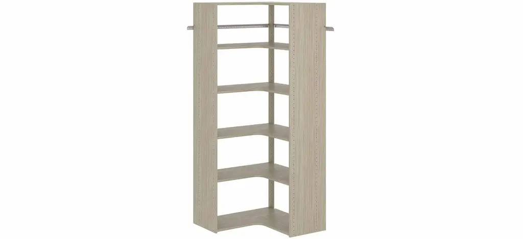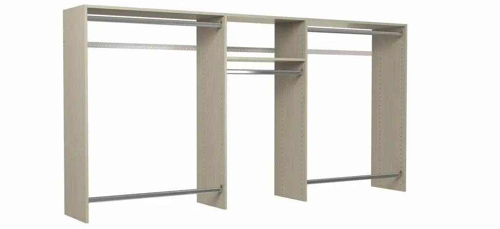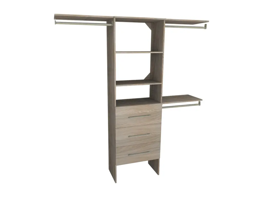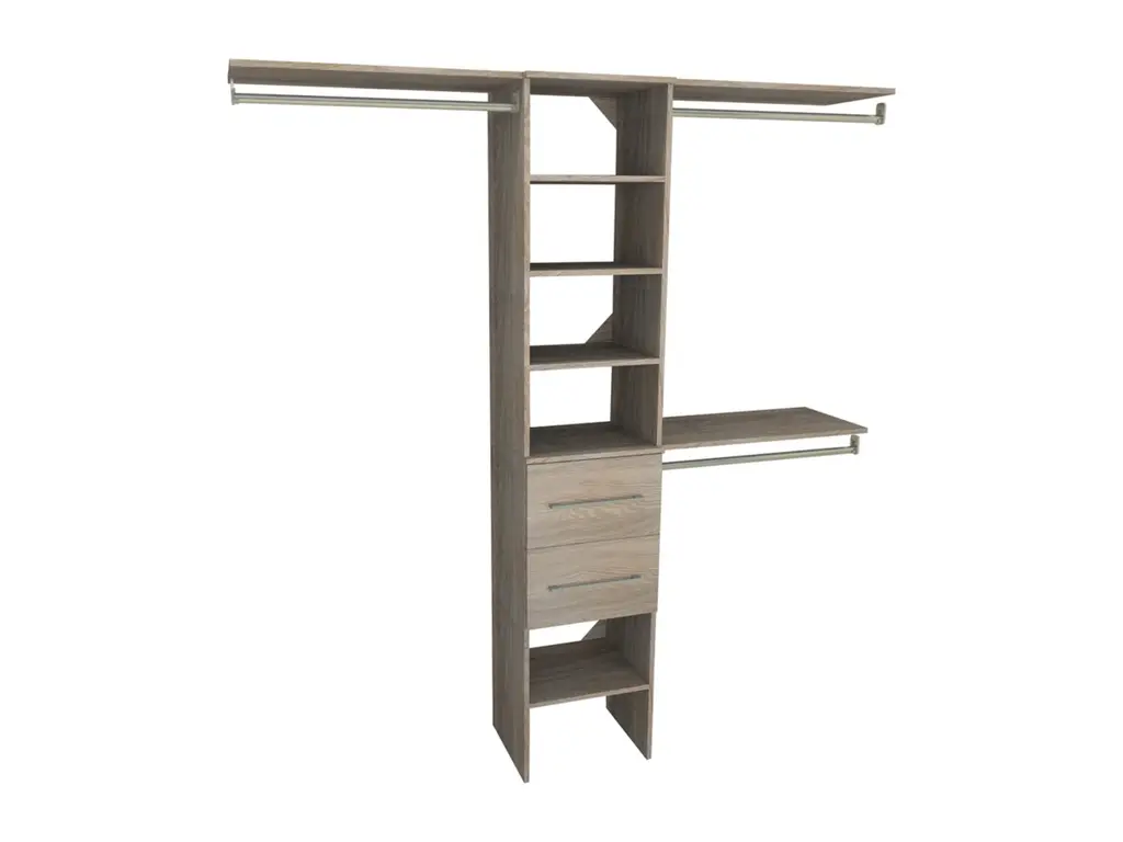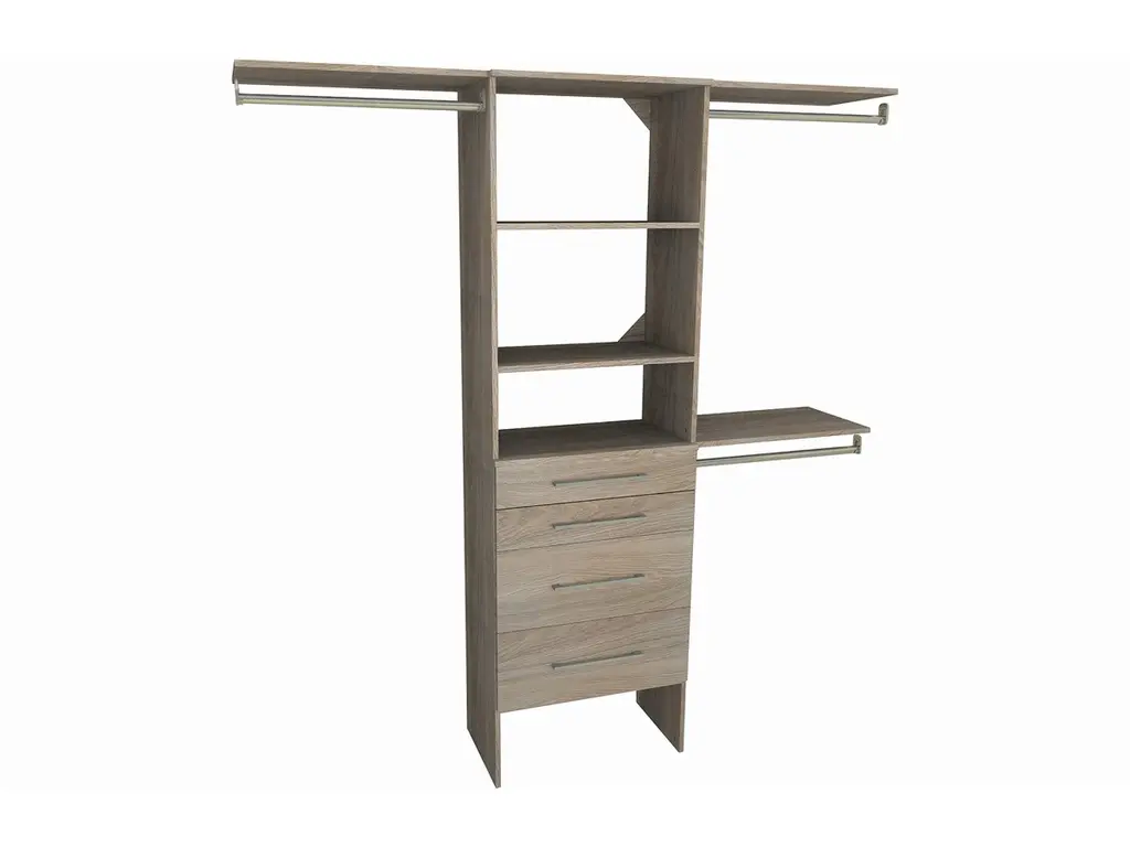 Upgrade your clothing storage with ClosetMaid's SuiteSymphony closet organization systems. This high-quality system includes a 25-inch wide tower with two adjustable shelves, three expandable closet rods, two 5--inch drawers, two 10-inch drawers and three top shelves to keep your clothing and accessories organized. The sturdy laminate frame fits closets between 60 to 120 inches wide and creates up to 264 -inches of shelf space and 144-inches of hanging space. Combine this kit with additional SuiteSymphony towers and accessories to create the reach in or walk-in closet of your dreams. SuiteSymphony – beautifully affordable organization to fit your life and style.