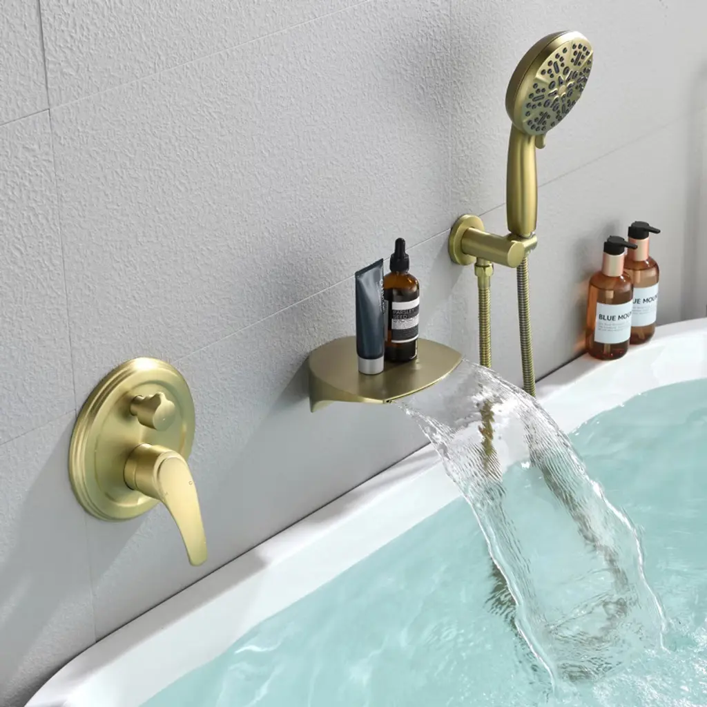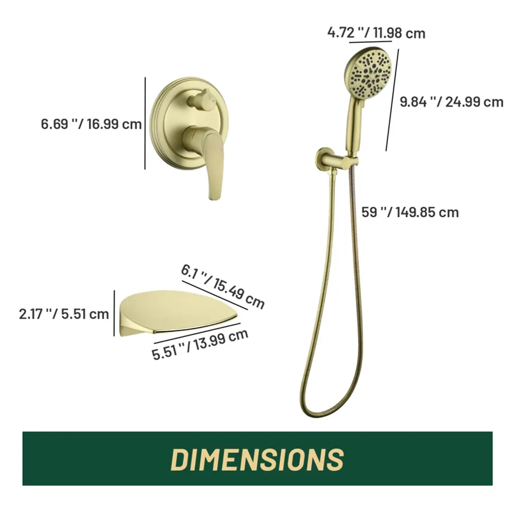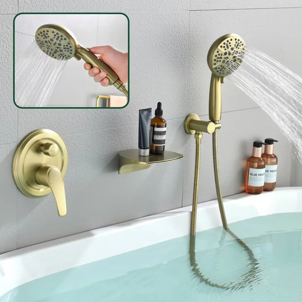 Cobbe With 7 Settings Handheld Shower Tub Spout And 59-inch Hose Tub Shower Faucet Set Single Handle Wall Mounted Shower System Brushed Gold