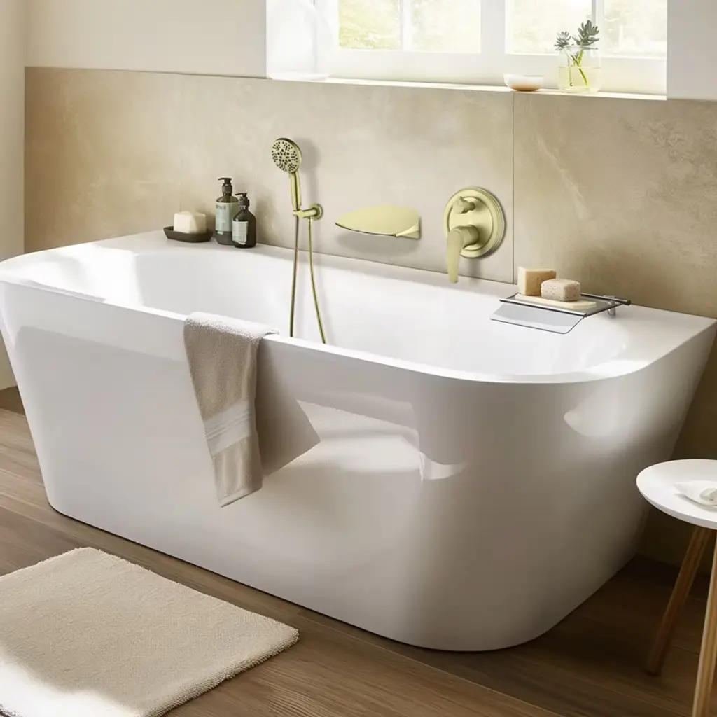 Reliable Design: This wall-mounted bathtub faucet with handheld shower not only adds an elegant texture to the bathroom, but also provides convenient and practical functions to meet the diverse needs of daily use.