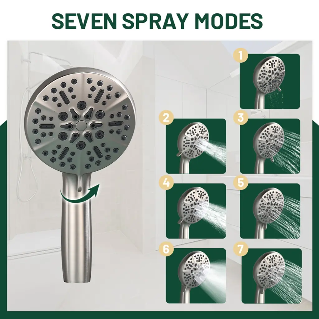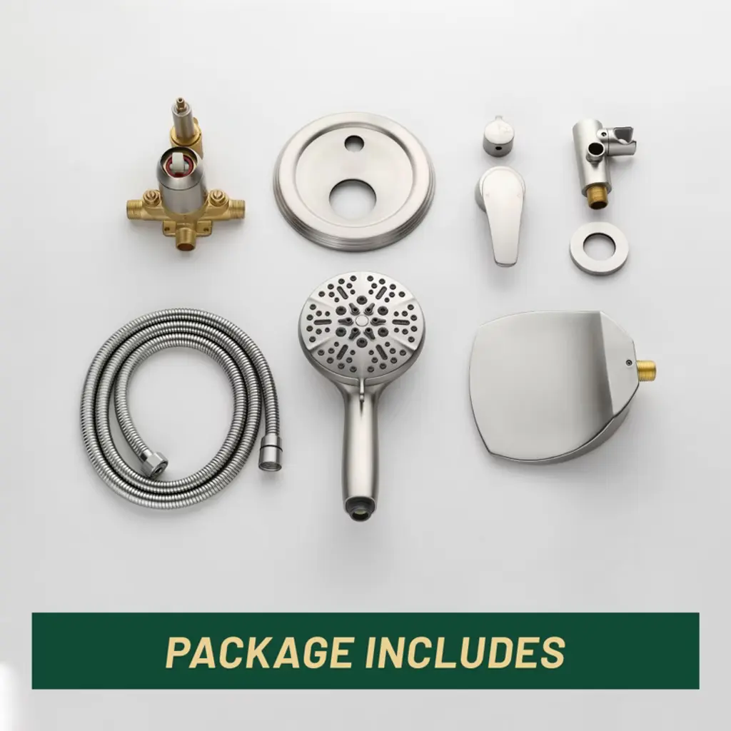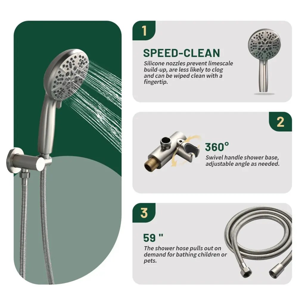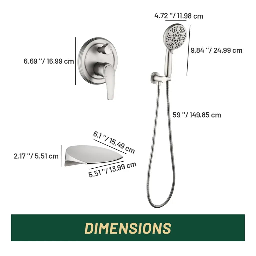 Cobbe With 7 Settings Handheld Shower Tub Spout And 59-inch Hose Tub Shower Faucet Set Single Handle Wall Mounted Shower System Brushed Nickel