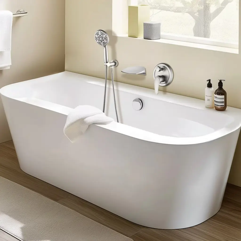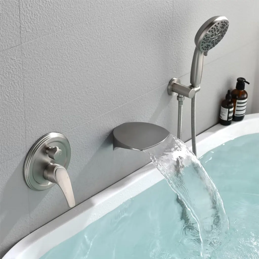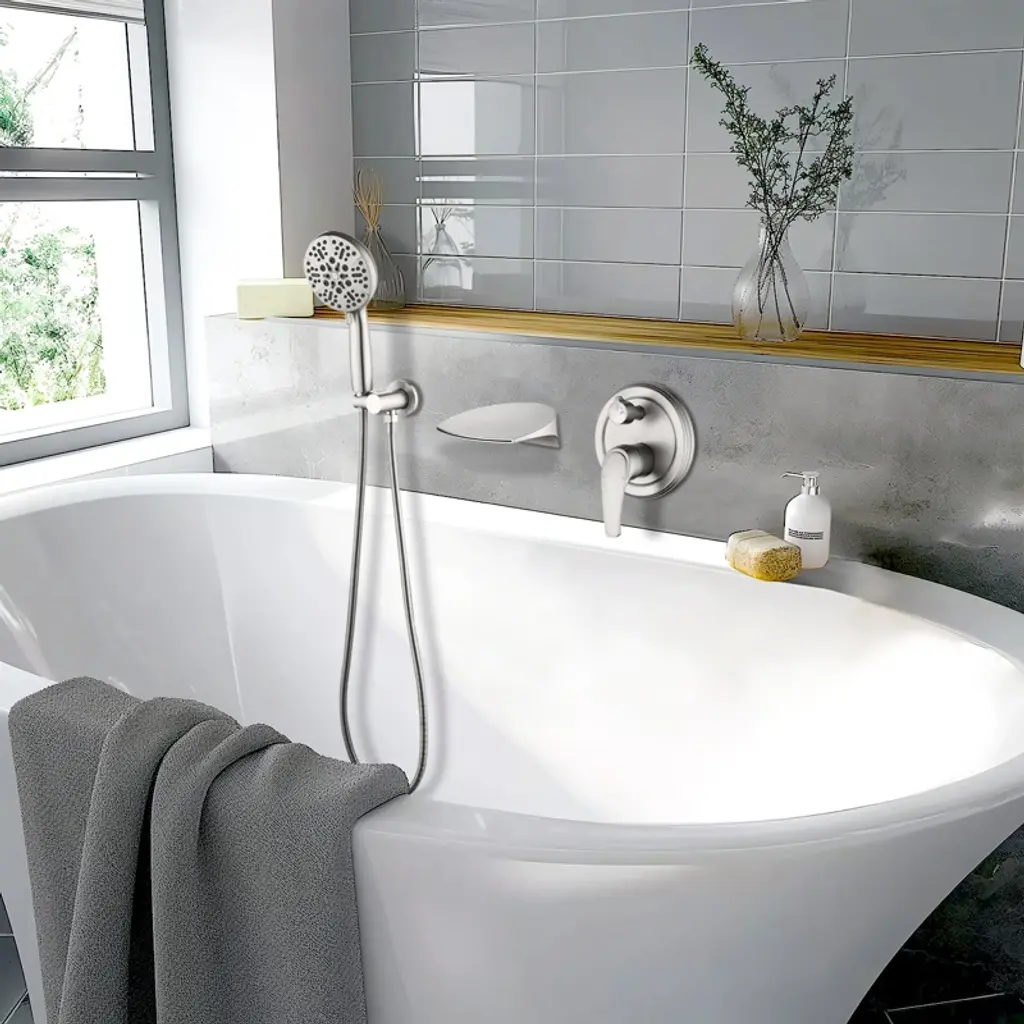 Reliable Design: This wall-mounted bathtub faucet with handheld shower not only adds an elegant texture to the bathroom, but also provides convenient and practical functions to meet the diverse needs of daily use.