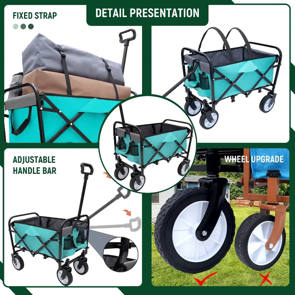 Collapsible Foldable Wagon Cart With Strapping System Beach Wagon, Utility Cart For Camping Supports 225lbs Green