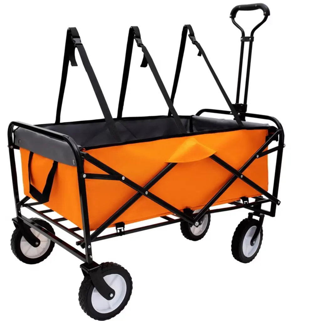 Collapsible Foldable Wagon Cart With Strapping System Beach Wagon Utility Cart Utility Wagon Grocery Cart For Supports 360lbs