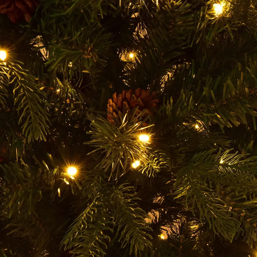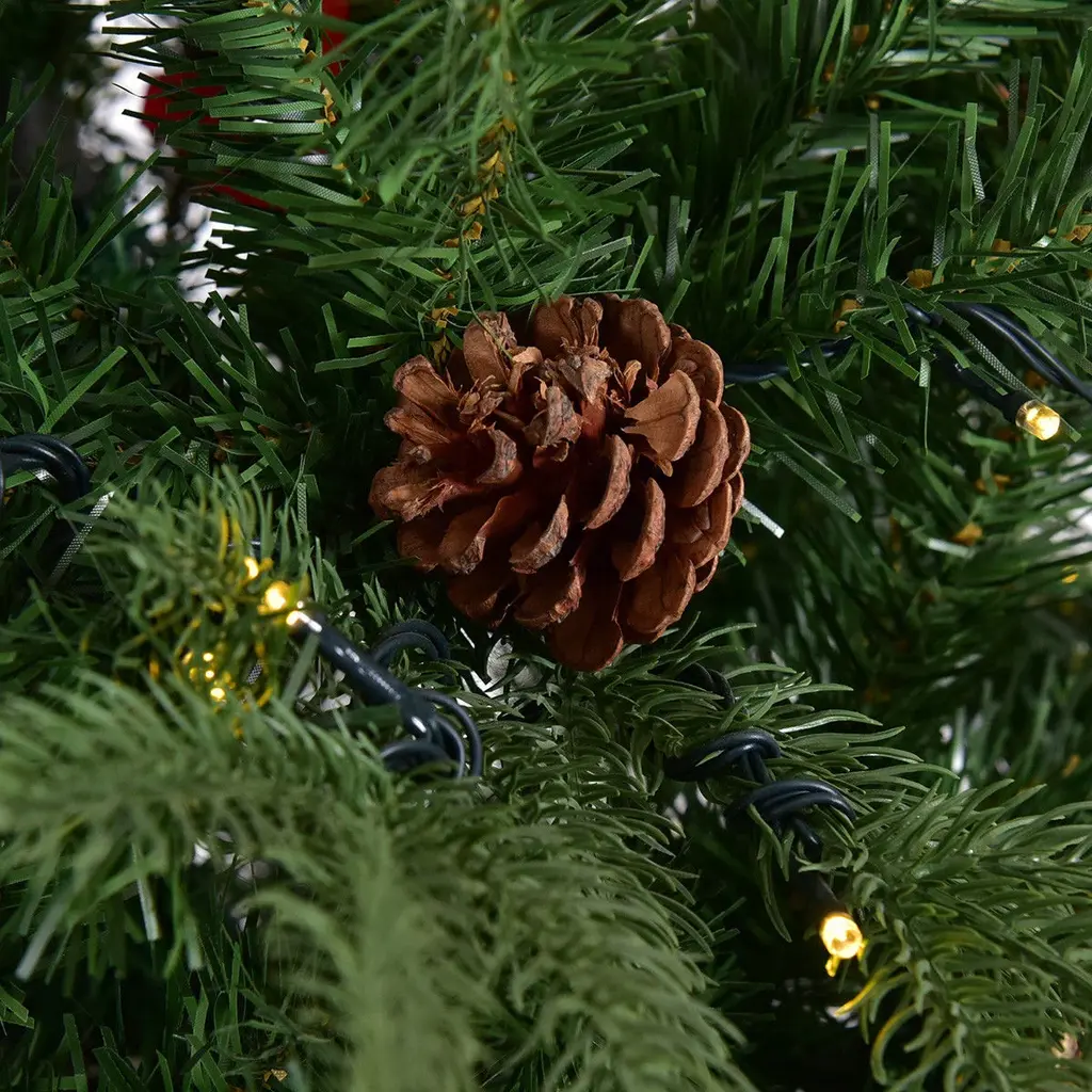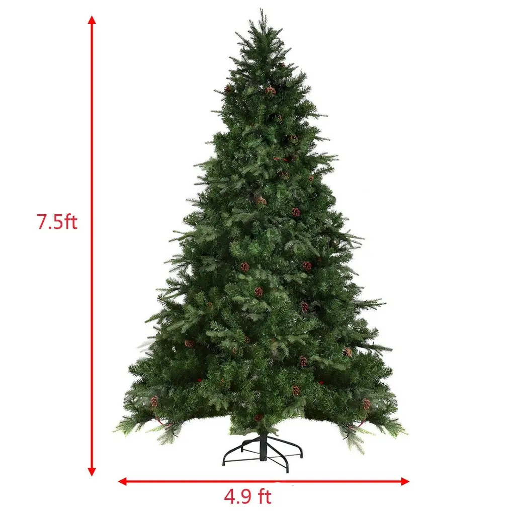 Our 7.5Ft Artificial Christmas tree is an ideal Christmas trimmings. Featuring simple green color, 71 pine cones and 1125 tips, this tree is designed to help emulate a real Christmas tree. The tree is made of fade and crush resistant PVC and PE needles, appears fresh-cut. In addition the staggered branches give the tree a fuller profile. High density metal bases to keep the tree planted in an upright position. The pre-installed 540 LED lights provide a warm white lighting effects, add a fantastic festive atmosphere to your home.FeaturePre-lit with 540 UL-certified LED lights on each branches for no assembly and easy to use Hinged branches for easy set-up,simply pull down the branches that open like the tail of a peacock Energy-saving lights provides a warm white lighting effects Features a mixture of light green PE and traditional PVC tips providing it with a fresh cut look that will last all seasonSturdy metal base provides the tree greater support and prevent the base from breakingSimple green color, 71 pine cones and 1125 branch tips design to help emulate a real Christmas treeGreat for indoor, especial for Christmas decoration, which can be used to decorate offices, apartments, or any room in a houseTree's body separates into 4 distinct hinged sections for easy assembling, dismantling, and storingSpecification