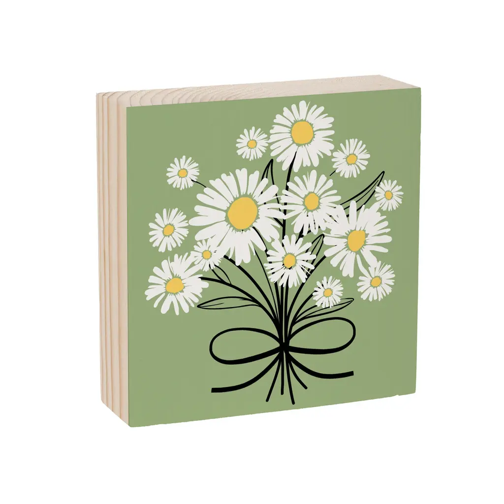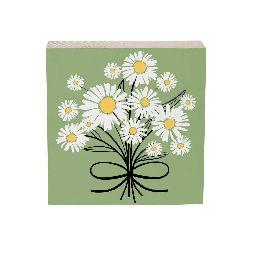 Daisy Scape Sign Wood Block, Bouquet, 6"x6"