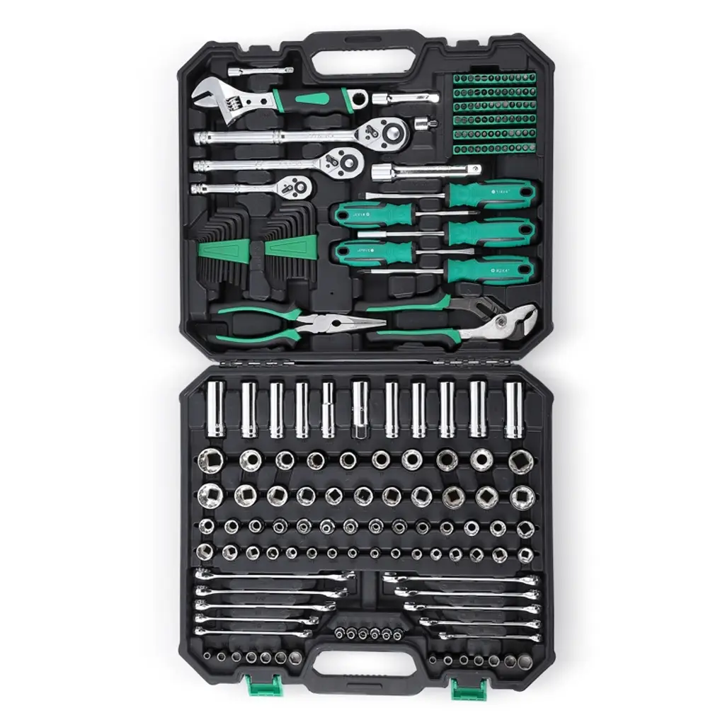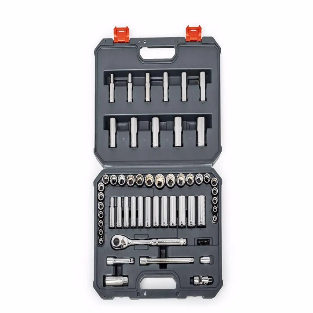 Complete a range of automotive and general equipment maintenance work with the 37 pc. 3/8 in. Drive Socket Set. For storage and hassle-free transportation, the set is sold inside the ToughSystem 2.0 Shallow Tool Tray which also features a molded insert and compatible lid for security. Access and maneuver in tight spaces with the durable 72-tooth ratchet's 5 deg. arc swing which allows you to maintain a range of motion in restricted areas.