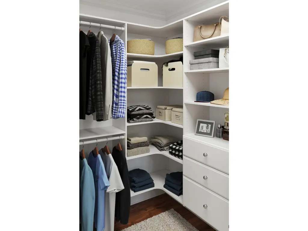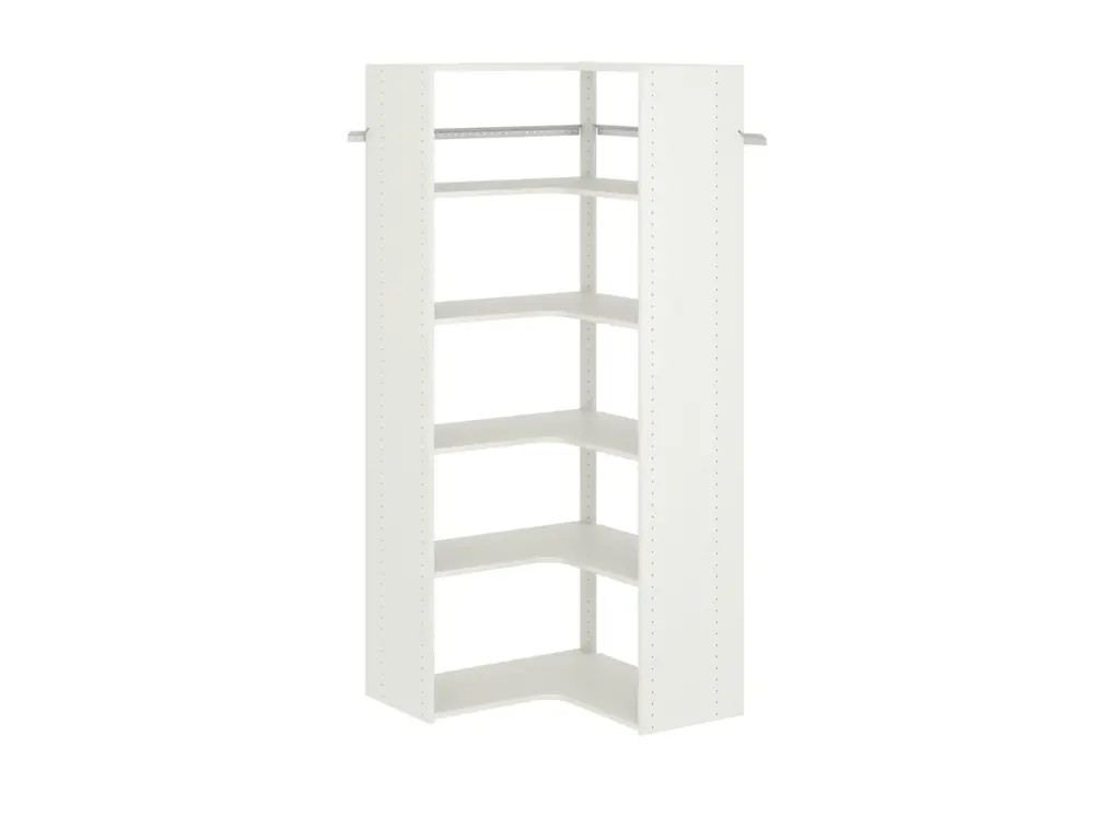 The corner tower kit can help optimize your available storage space in those tough to reach corner sections. It comes with three fixed and three adjustable, 14-inch-deep shelves to allow for flexibility. This closet system hangs on wall mounted steel rails for an easy installation. Each kit can be installed on its own or combined with other closet kits and comes with all of the required installation hardware. For any questions regarding this product, please contact customers@thestowcompany.com or 1-800-562-4257 Monday through Friday 8:00AM to 5:00PM (EST)