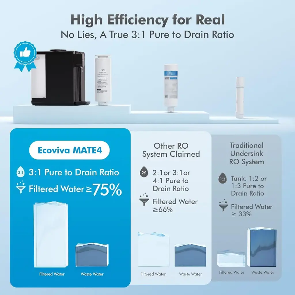 Ecoviva Mate4 Uv Countertop Water Filter 7 Stages Instant Hot Ro Filtration System 4 Temperature Options 3:1 Pure To Drain, Tds & Filter Life Monitor