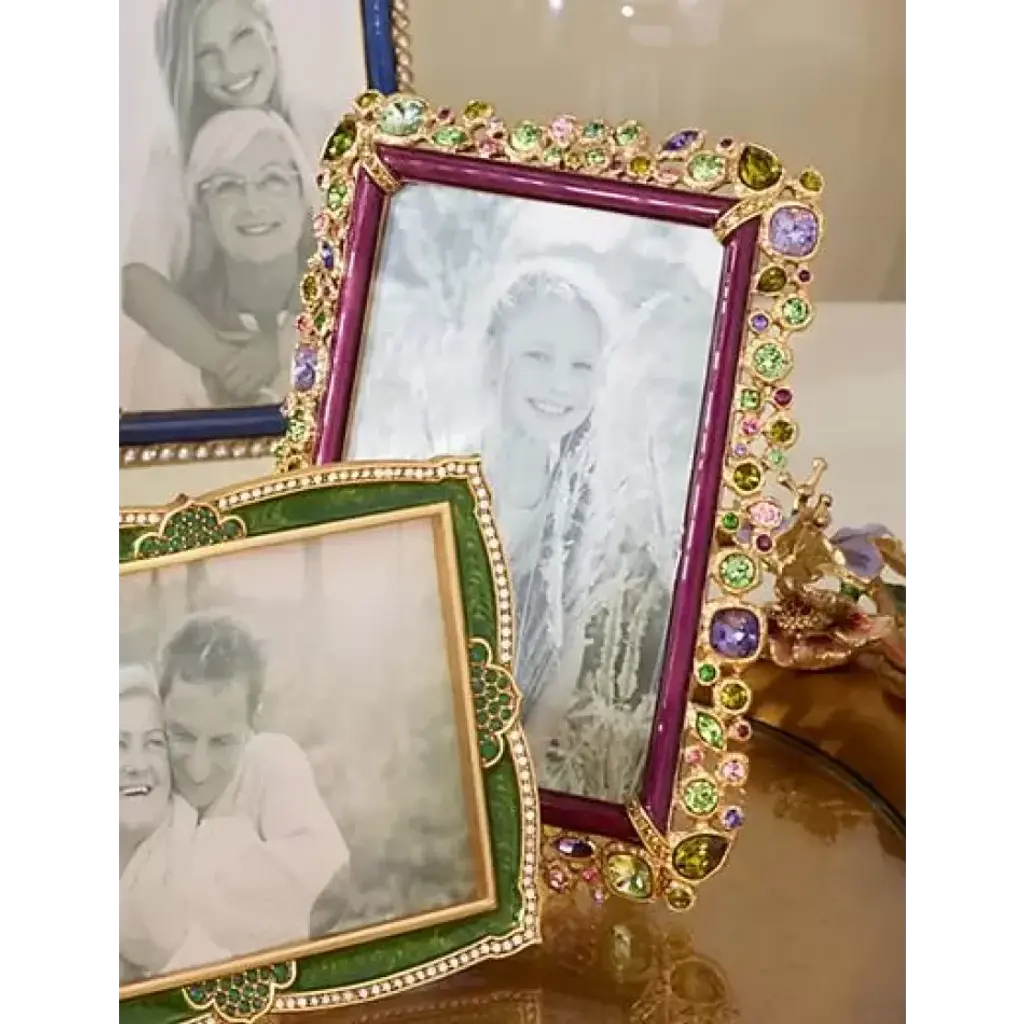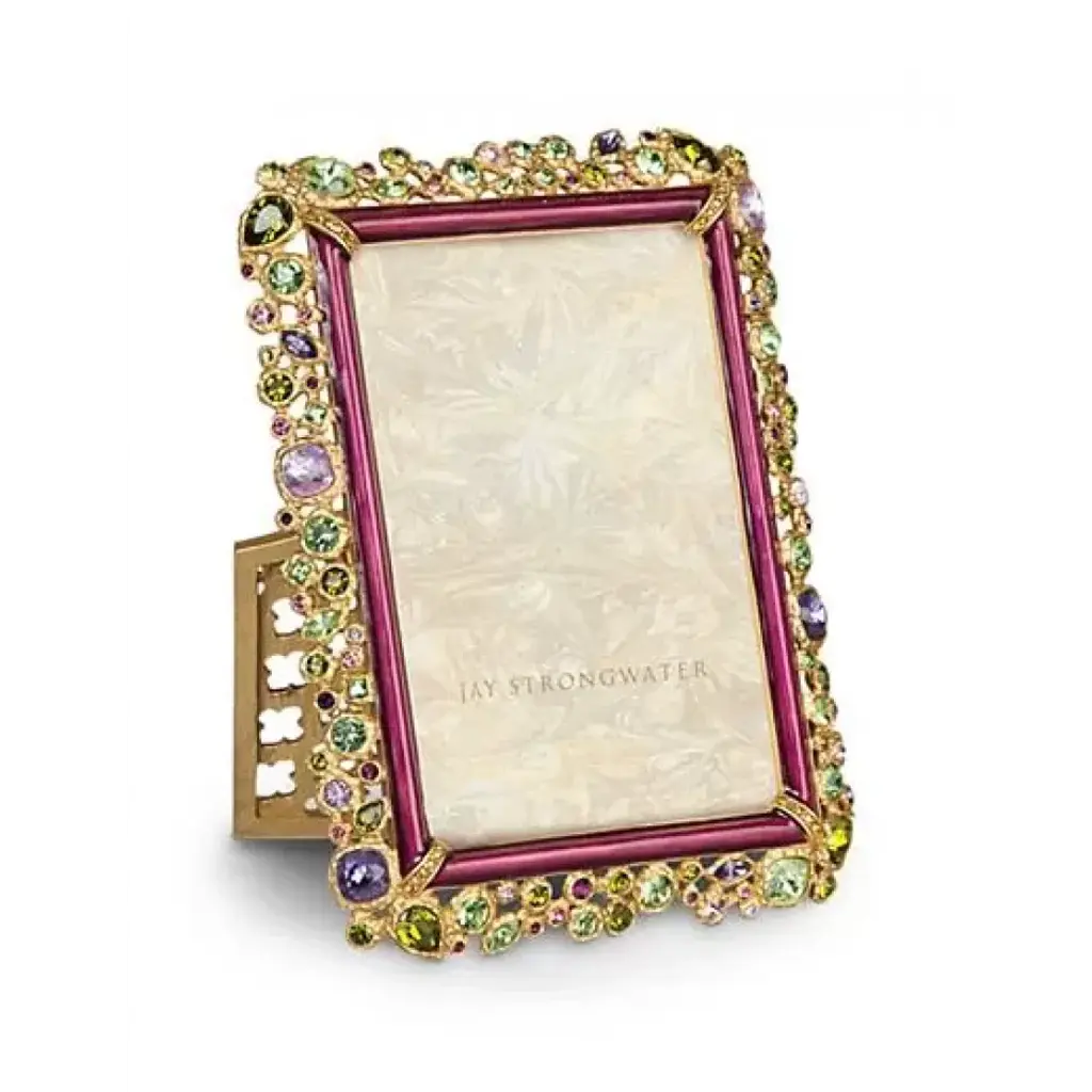 Faceted crystal stones in hammered bezels adorn the Emery Bejeweled 4" x 6" Frame for singular, signature style.