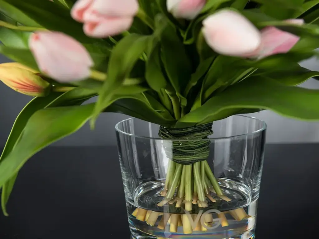 ETERNITY MIX ALFEO is a faux flower arrangement in clear glass stand with artificial flowers and “water illusion”, created by our floral designers.Ideal for interior decor or weddings and events setting.
