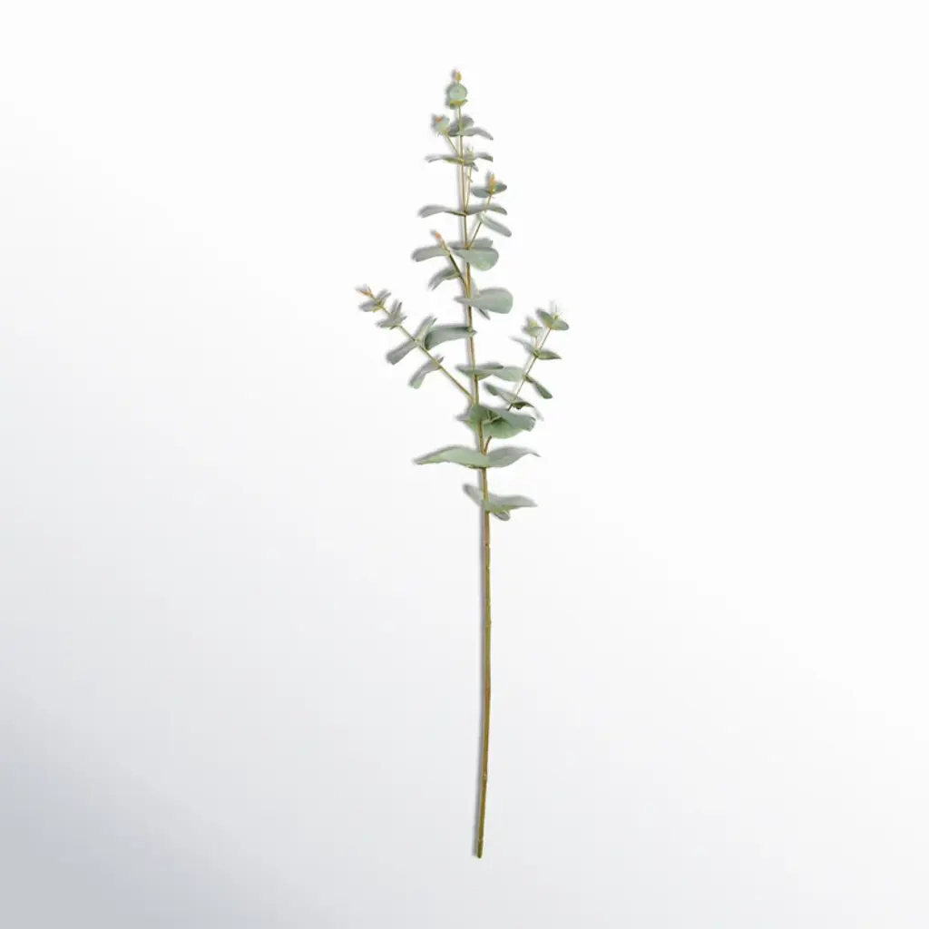 This tall stem of Eucalyptus features the rich texture and grayish green color of the real plant combined with the durability and ease of faux Floral. Use this stem as filler in an opulent foyer arrangement or combine multiple stems for a lush accent. with its durable construction and carefully dyed fabric, this Eucalyptus stem will bring a natural touch to your space.