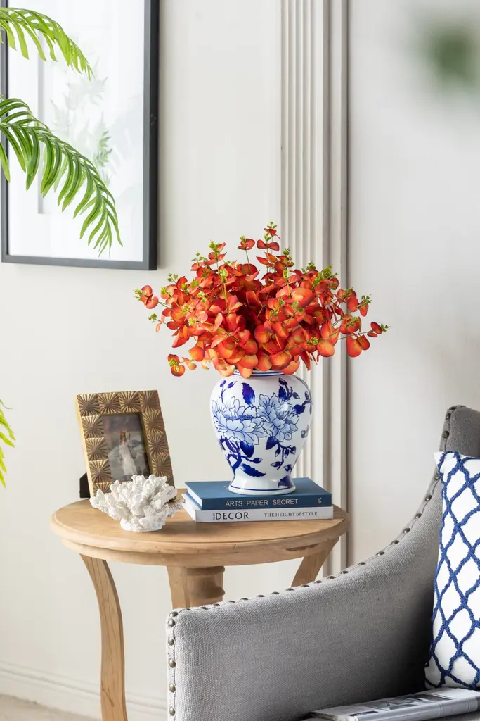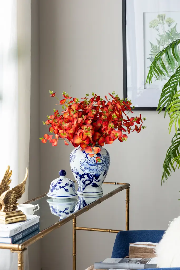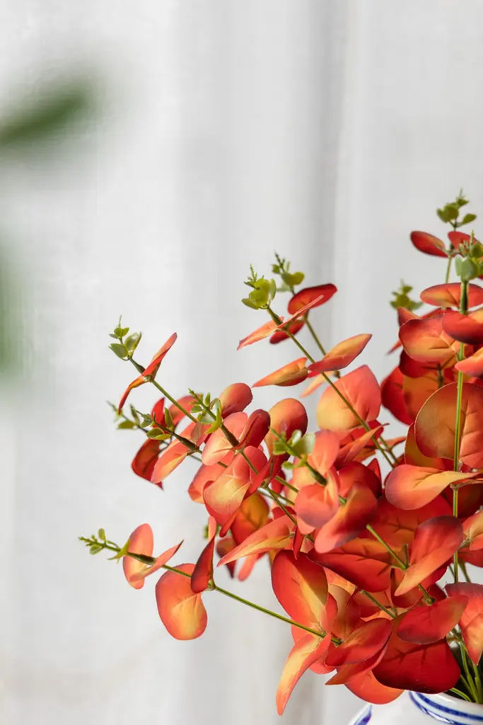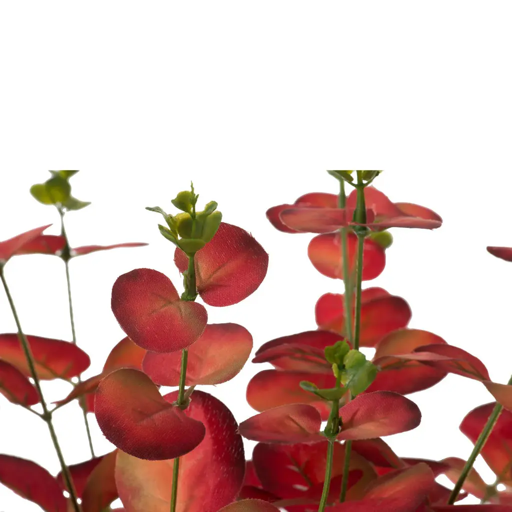 With realistic detailing and bold, bright color, this beautiful Red Eucalyptus Bundle adds natural beauty to any space. Add this collection of stems to an antique vase or pitcher for a casual look or use this piece to add vibrant color and texture to a opulent floral arrangement. Perfect for home or office, this piece combines realistic beauty with the ease and durability of faux floral.