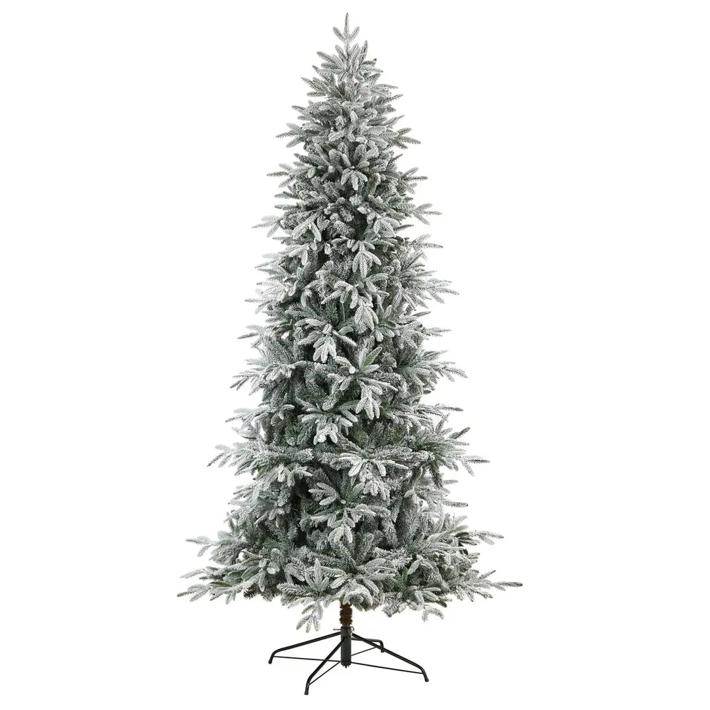 This flocked artificial spruce tree ensures that every Christmas is a white one. Its 1,317 bendable branch tips are prestrung with 550 lights so you needn't worry about tangles. Stabilized on a metal stand, the tree will proudly display your ornaments this year and for many Christmases to come.