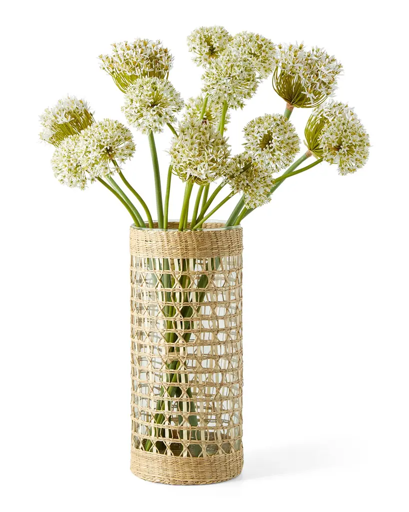 Stems. Our partnership with the doyenne of faux floral couture, Diane James, is in full bloom. Fashioned of fabric hued to emulate nature in her Connecticut studio, handmade alliums are grown to fit and flourish in our Cayman vessel.