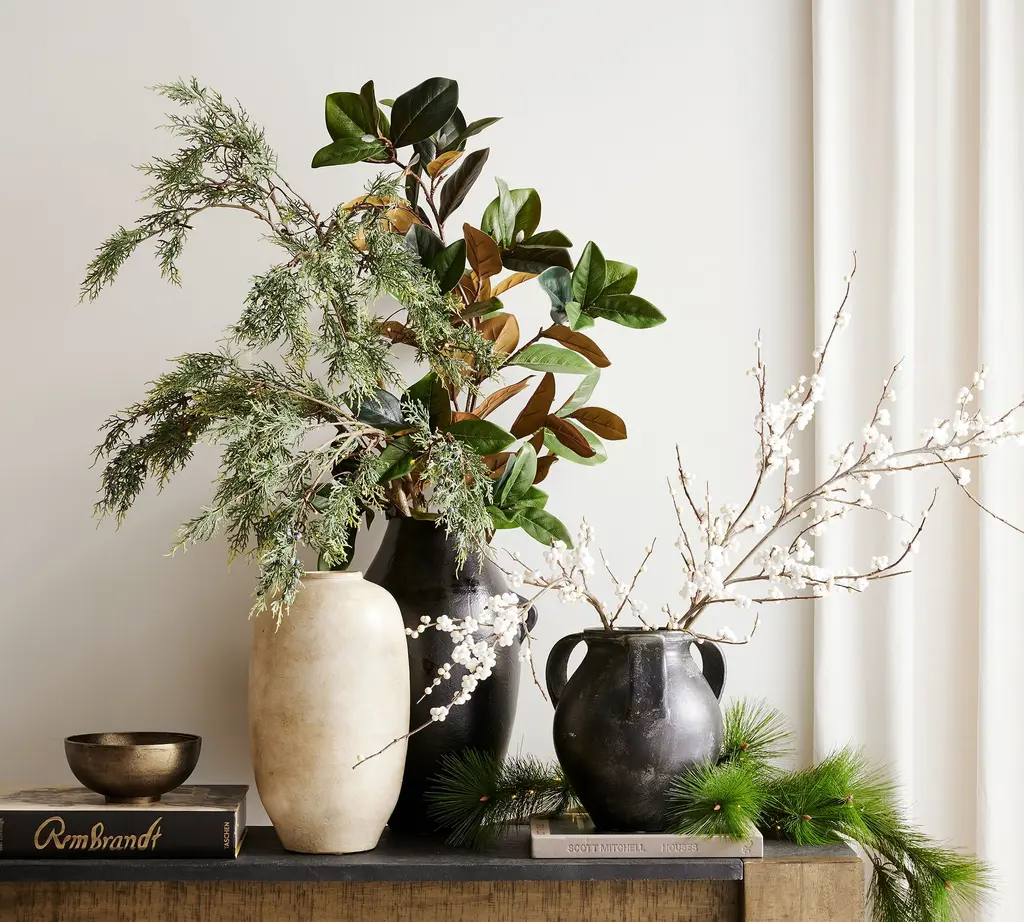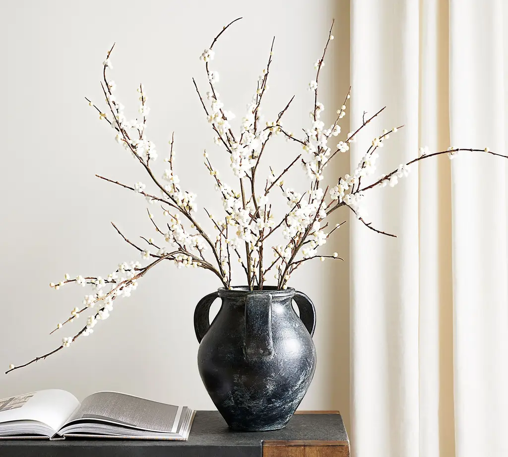 Punctuated with bright white berries, our handcrafted branch looks like a Chinese ink painting brought to life. Pop it into an artisanal vase to make an artful statement or combine it with other faux florals to add depth and texture to any tabletop or mantel.