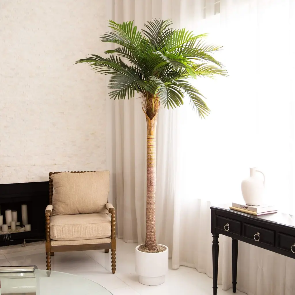 Picture your perfect summer vacation: Where you sun-soak on a hammock, feel the sea breeze hitting your face while sipping on a coconut. Luckily you can now tropic like it's hot with this artificial coconut palm tree. It features lush, gorgeous green palm fronds stemming from a life-like trunk. Standing tall from a black nursery planter, recreate island life in any space like your living room, office, bedroom, or apartment. Do you want to feel the sea breeze with this tree? DIY and add to a planter of your choice to fit your style.