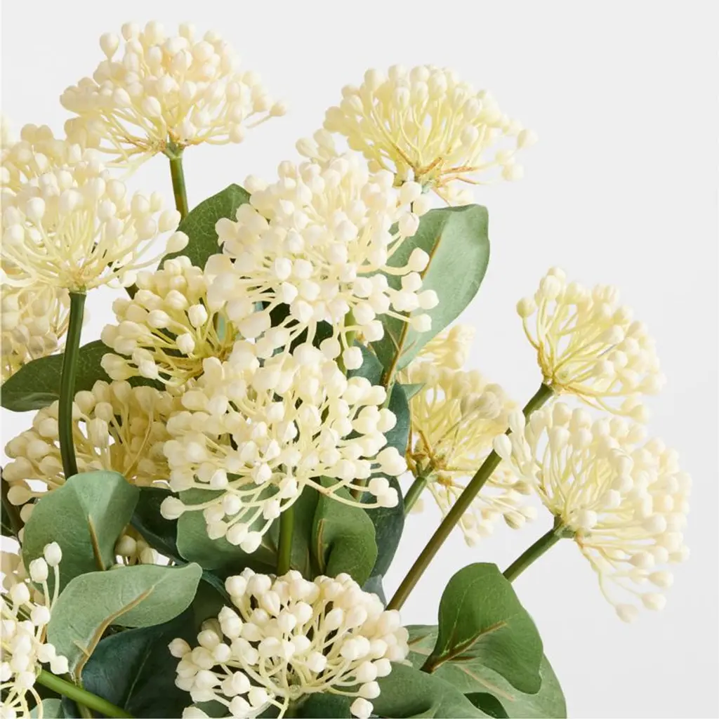 Made with incredibly realistic texture and softness in true-to-life colors, this Real Touch viburnum stem looks and feels as if it were just plucked from a garden. Our stem captures the beauty of this springtime bloomer with showy clusters of tiny white flowers and glossy dark-green foliage. Mix and match with our other exclusive Abigail Ahern botanicals to build a gorgeous fresh-from-the-garden faux bouquet that lasts and lasts.Our exclusive Cotswolds-inspired collection with British floral designer Abigail Ahern reimagines faux botanicals for the modern home.