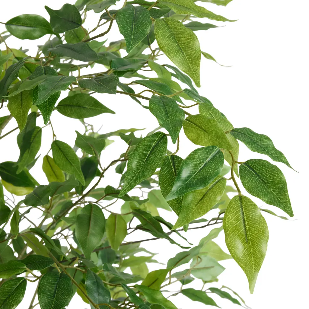 Add a splash of green to any corner with our lush faux Ficus. An effortless way to enjoy the beauty of this versatile plant, our artificial version stands nearly six feet tall with a profusion of pointy, realistically veined leaves. Simply fluff the branches and drop the weighted black base into any basket or planter for an instant room refresh.
