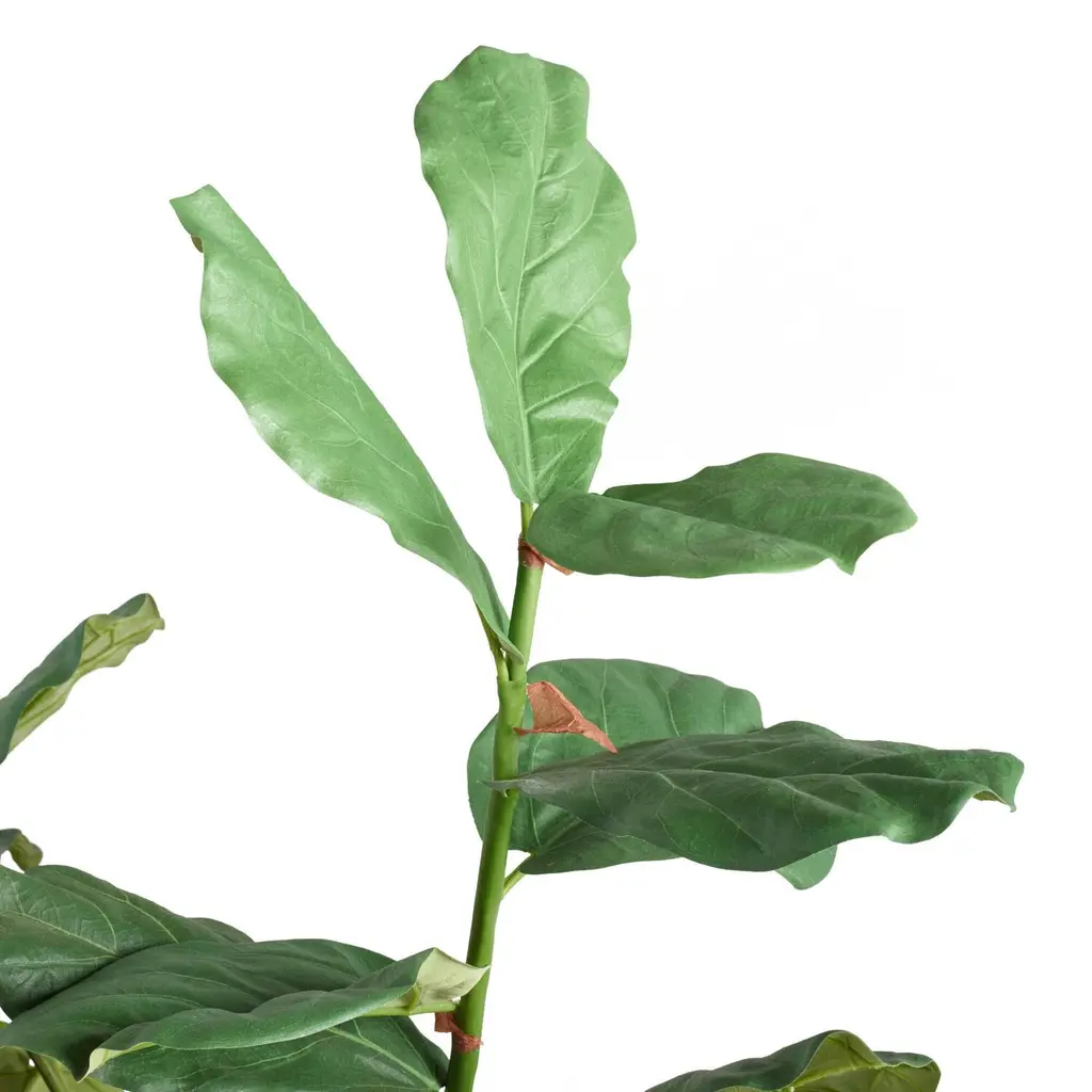 Lend on-trend style to your space with the lush green color and distinctive silhouette of our artificial fiddle-leaf fig tree. Handcrafted to mimic the broad, richly veined leaves of the real thing, this gorgeous fake plant brings fresh texture to any room. Drop its versatile black base into any basket or pot for an irresistible decor addition.