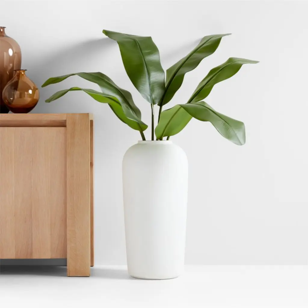 Refresh your living room, sunroom or porch with the tropical elegance of the banana tree. With its dramatic height and large leaf, our faux banana leaf fools the eye with lifelike detailing. Subtle ribbing textures the gracefully arching, lush green leaf. Unparalleled in quality and skillfully crafted to look just like the real thing, the tall stem instantly brightens the space its own or in multiples in one of our floor vases (sold separately).