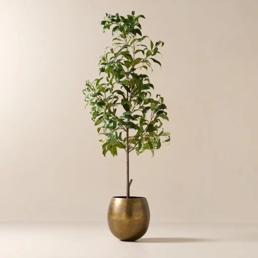 Stately faux mango tree makes a large-scale botanical statement. Designed to look like a young mango tree, each one-of-a-kind tree stands at just over eight feet, adding a tropical touch to any space. CB2 exclusive.