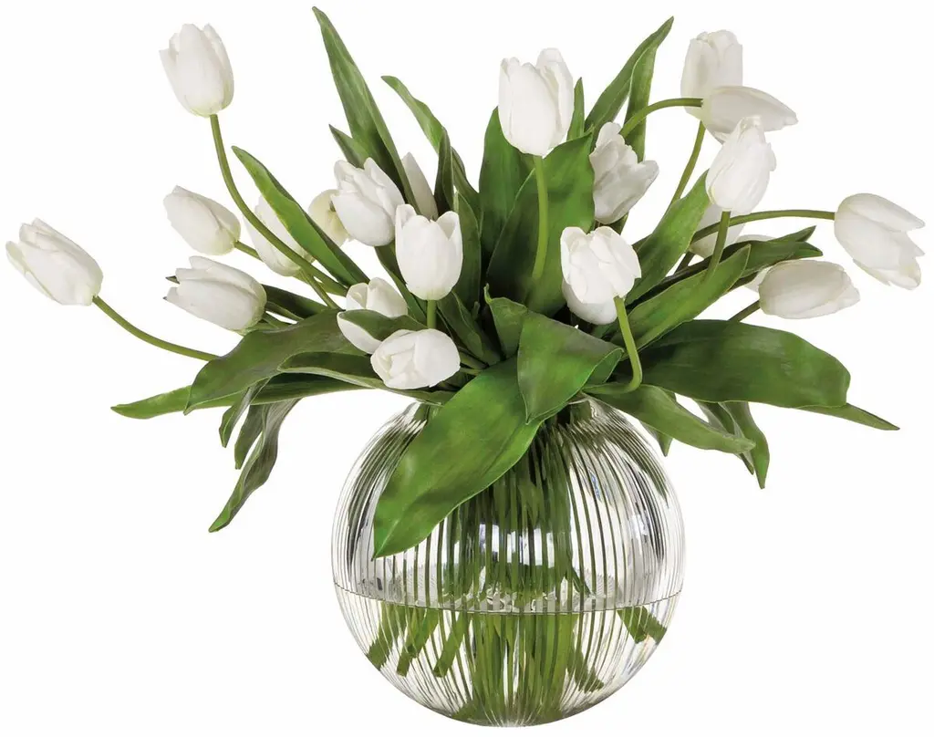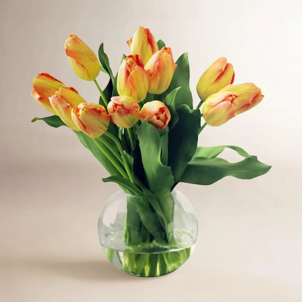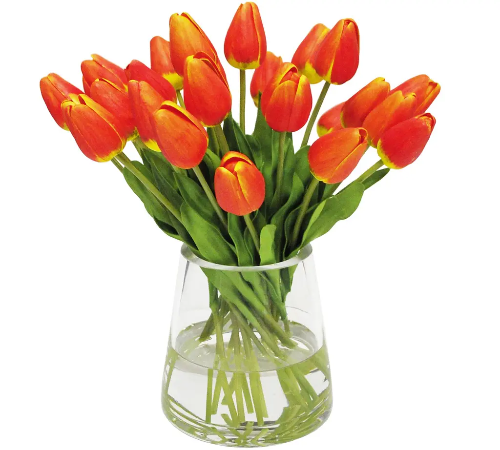 Bright bulbs add a cheerful touch to the room. Our Faux Orange Tulip Arrangement captures the beauty of the first signs of spring, livening up any room or event space. Petal by petal, this arrangement is assembled by hand.